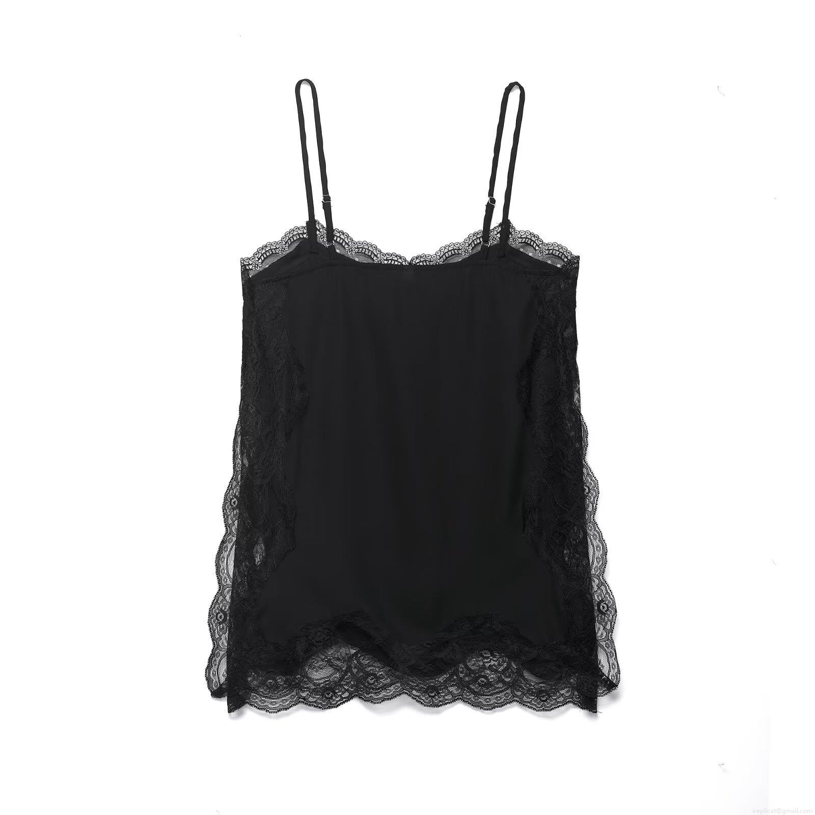 Solid Color, V-neck, Lace Patchwork, Thin Shoulder Straps, Satin Feel