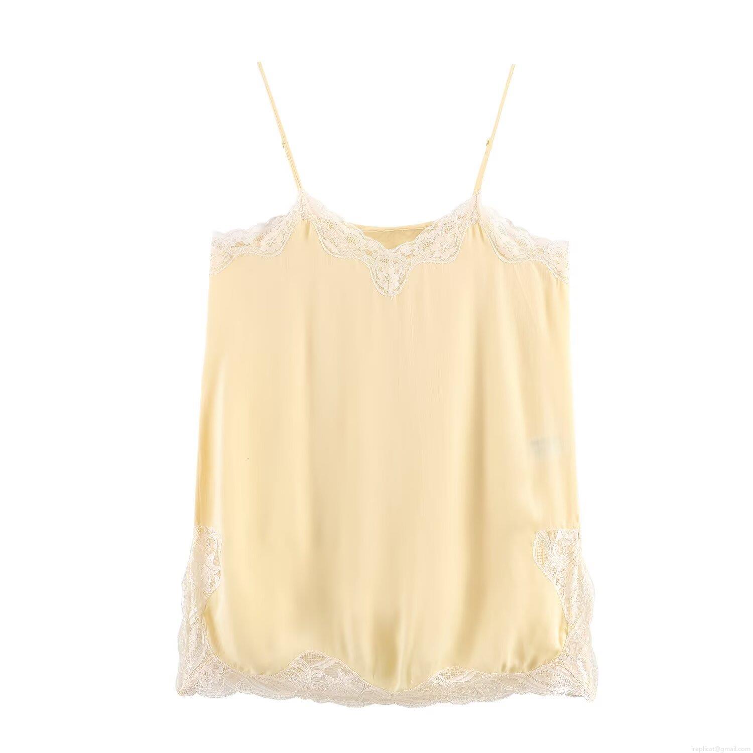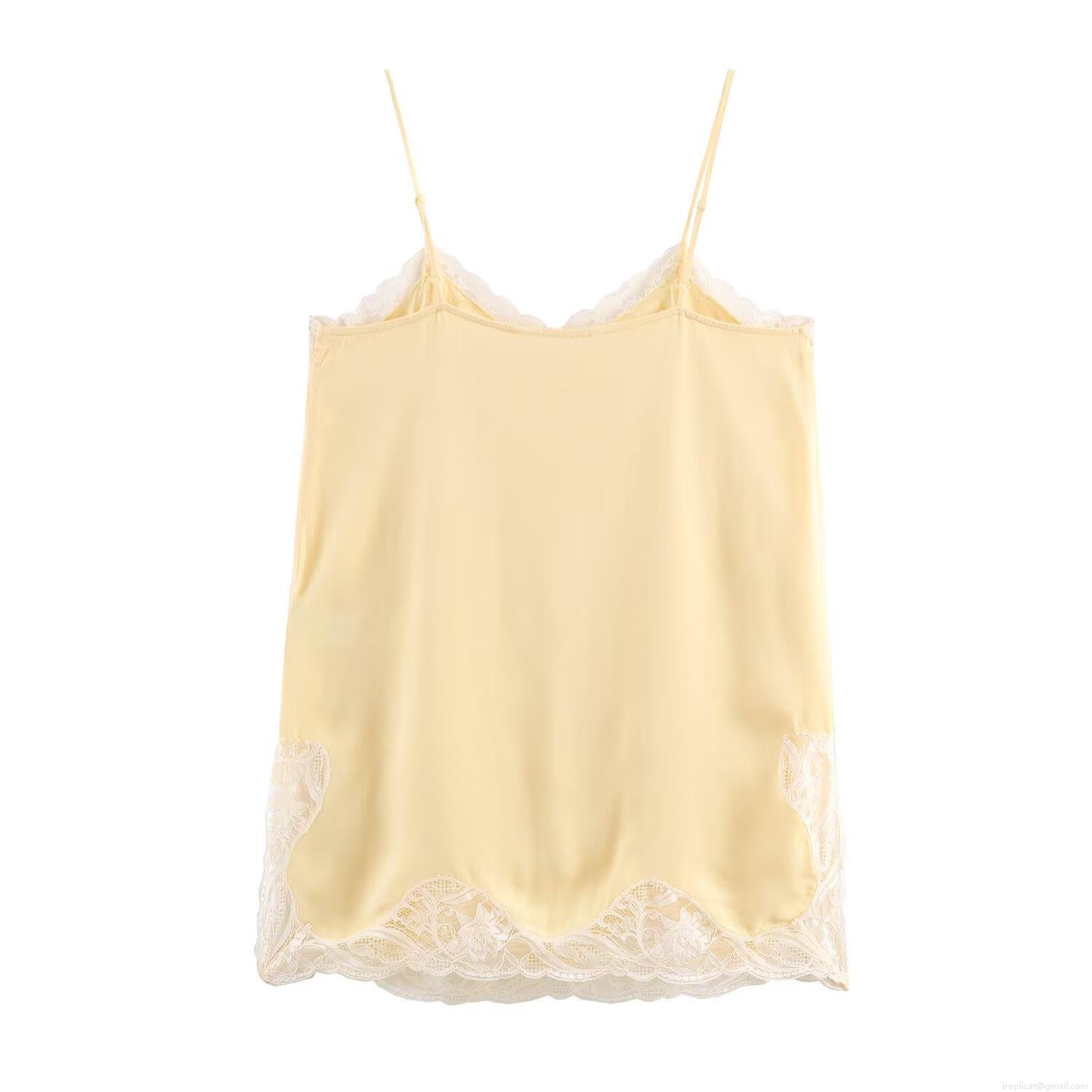 • Women's Sexy Lace Trim Camisole Tank Top Satin Polyester V-Neck Slim Fit Top With Adjustable Spaghetti Straps For Daily Dating Summer Apparel