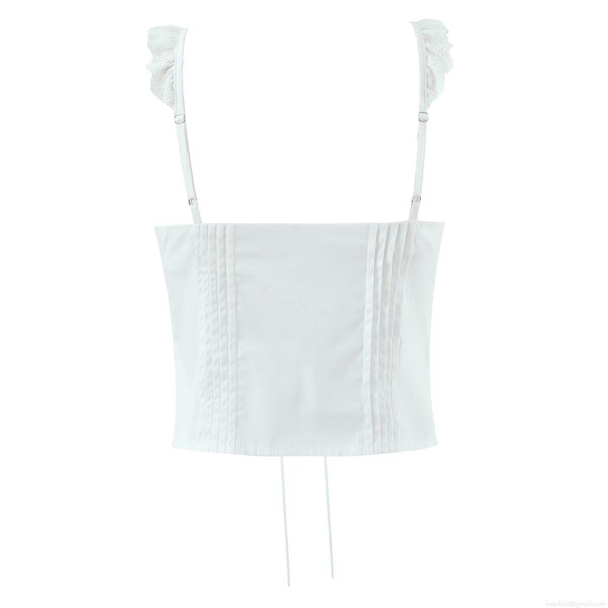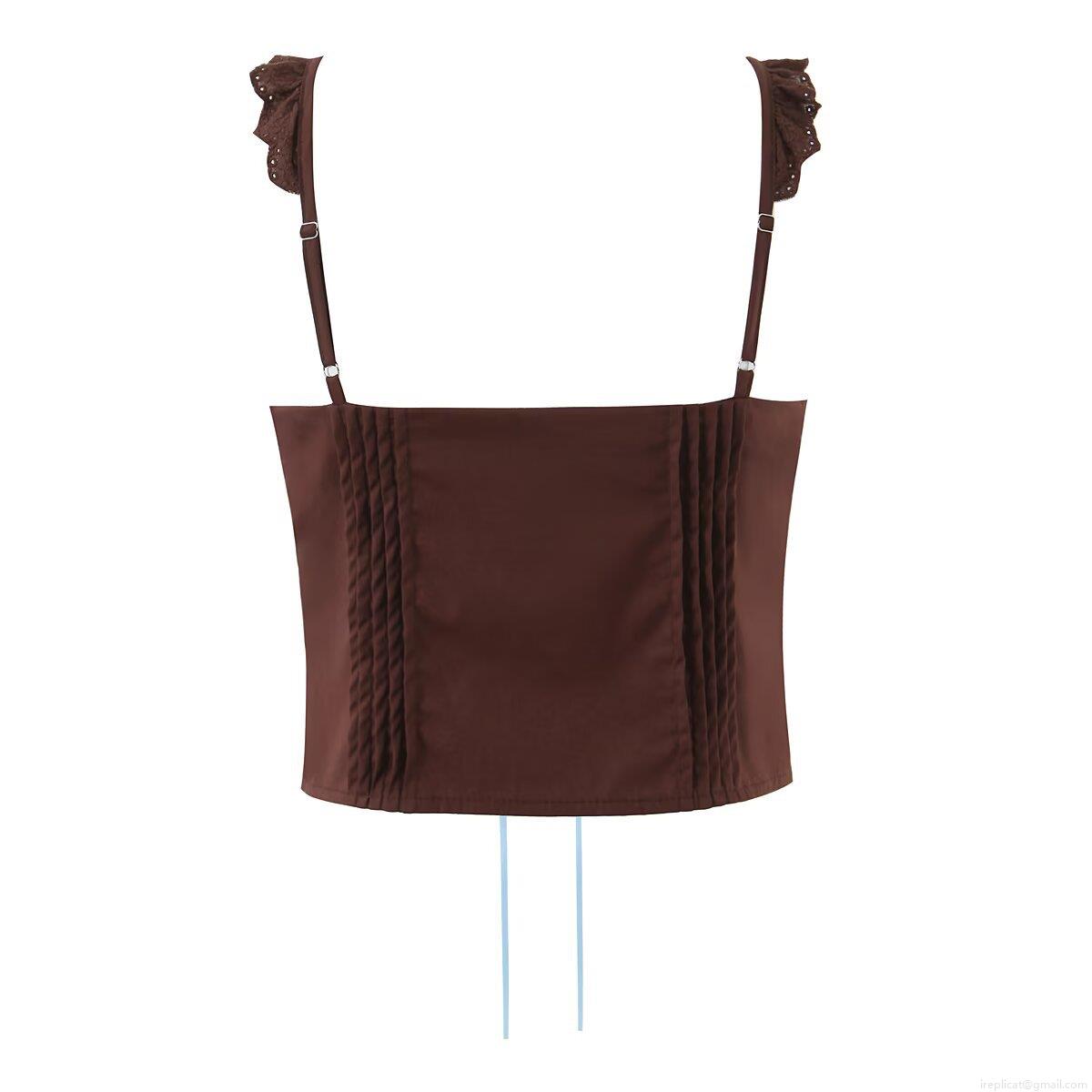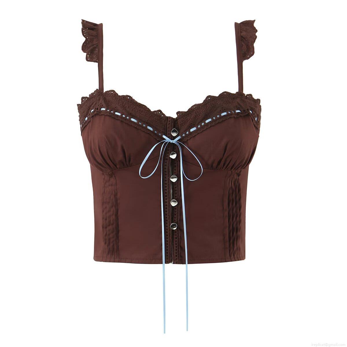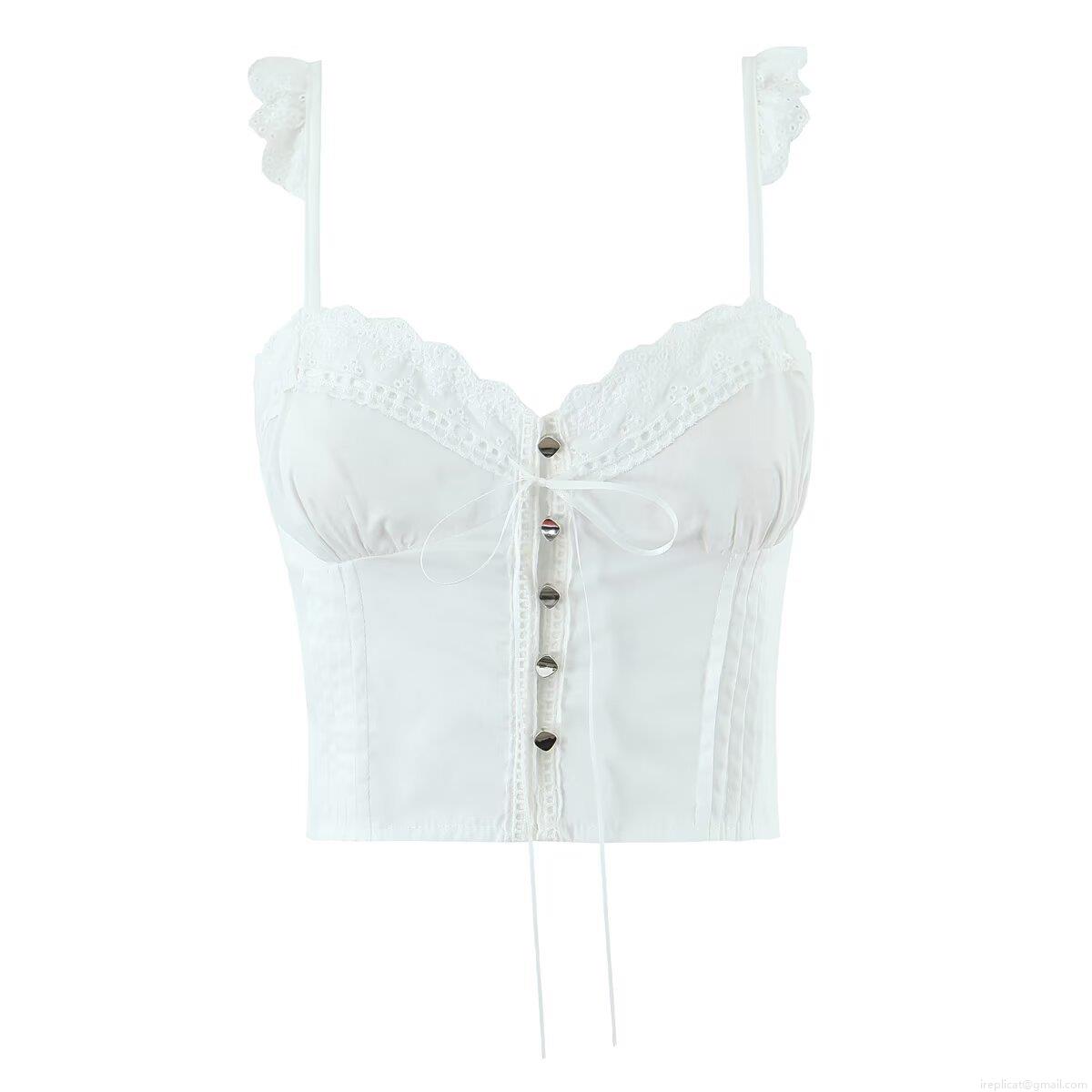• Women's Sexy Lace Trim Cotton Camisole Cropped Top With Metal Heart Buttons And Bow Tie Detail For Summer Streetwear Party Sleeveless Tank Top