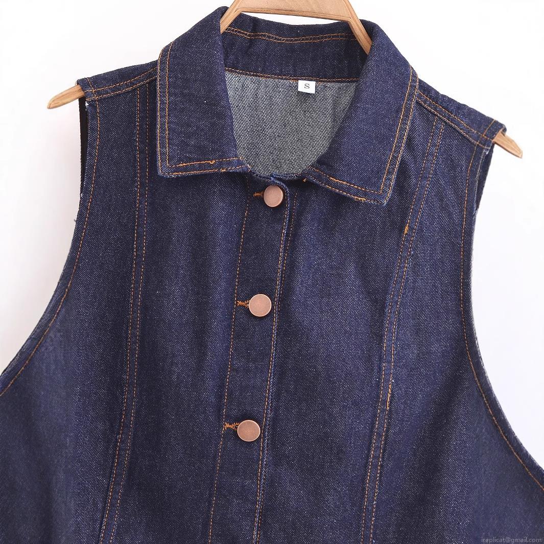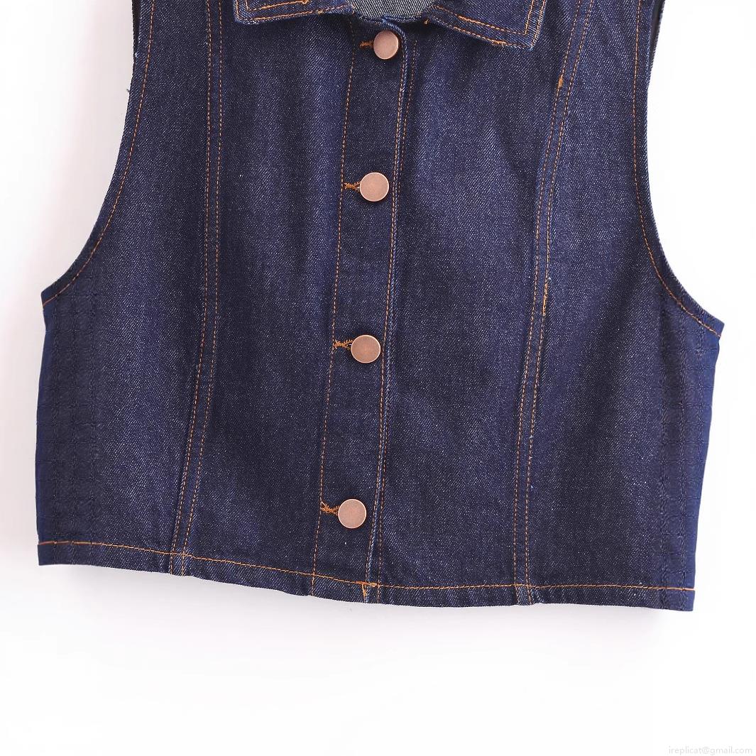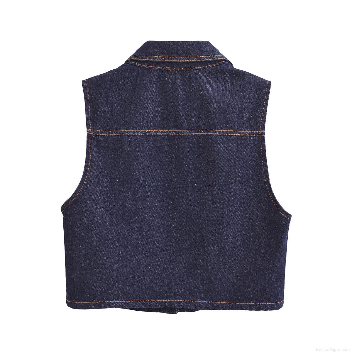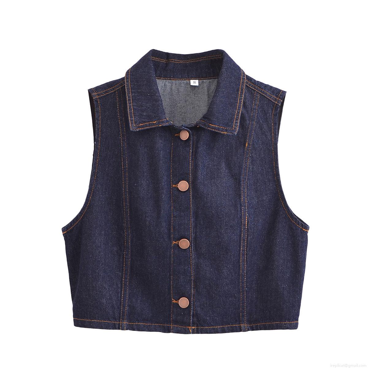 • Women's Sexy Lapel Cropped Denim Vest Sleeveless Button Down Tank Top With Contrast Stitching Slim Fit Casual Polyester Jean Vest Top For Women