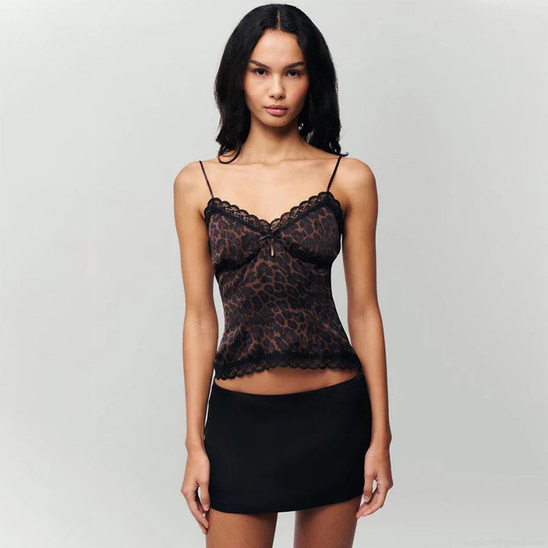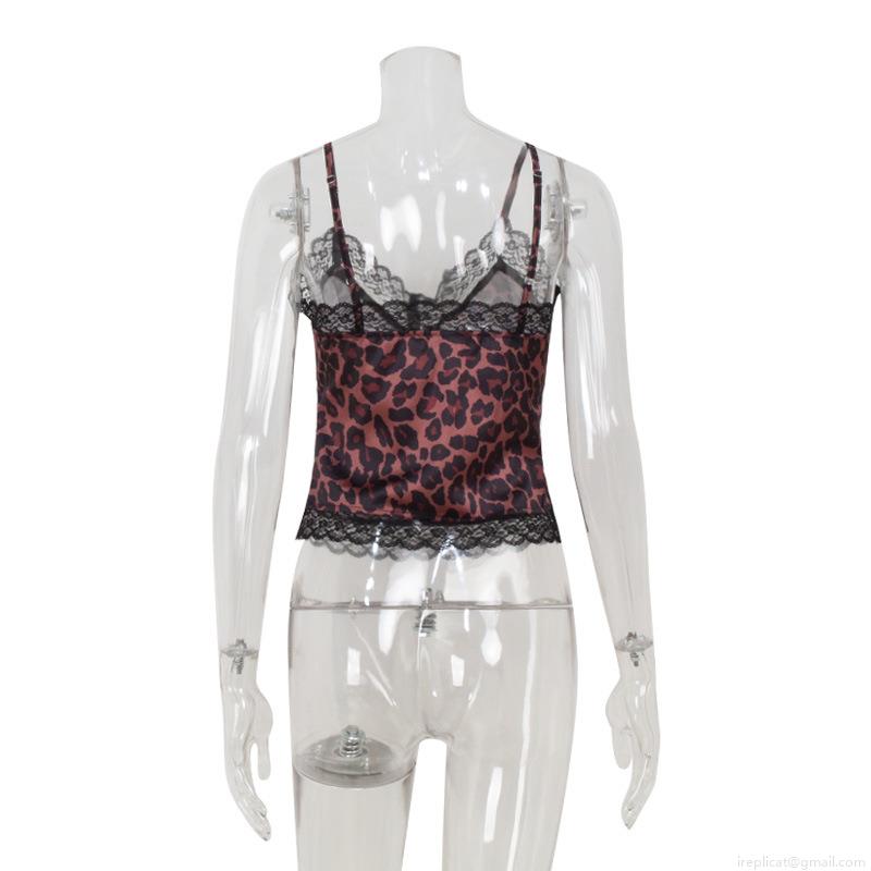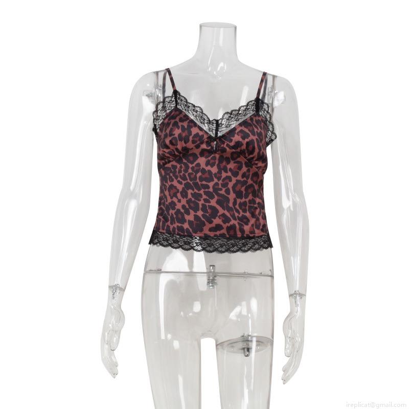 • Women's Sexy Leopard Print Camisole Lace Trim V-Neck Backless Tank Top Satin Silk Like Fabric Sleeveless Summer Top Vintage Hot Girl Style Y2K Fashion