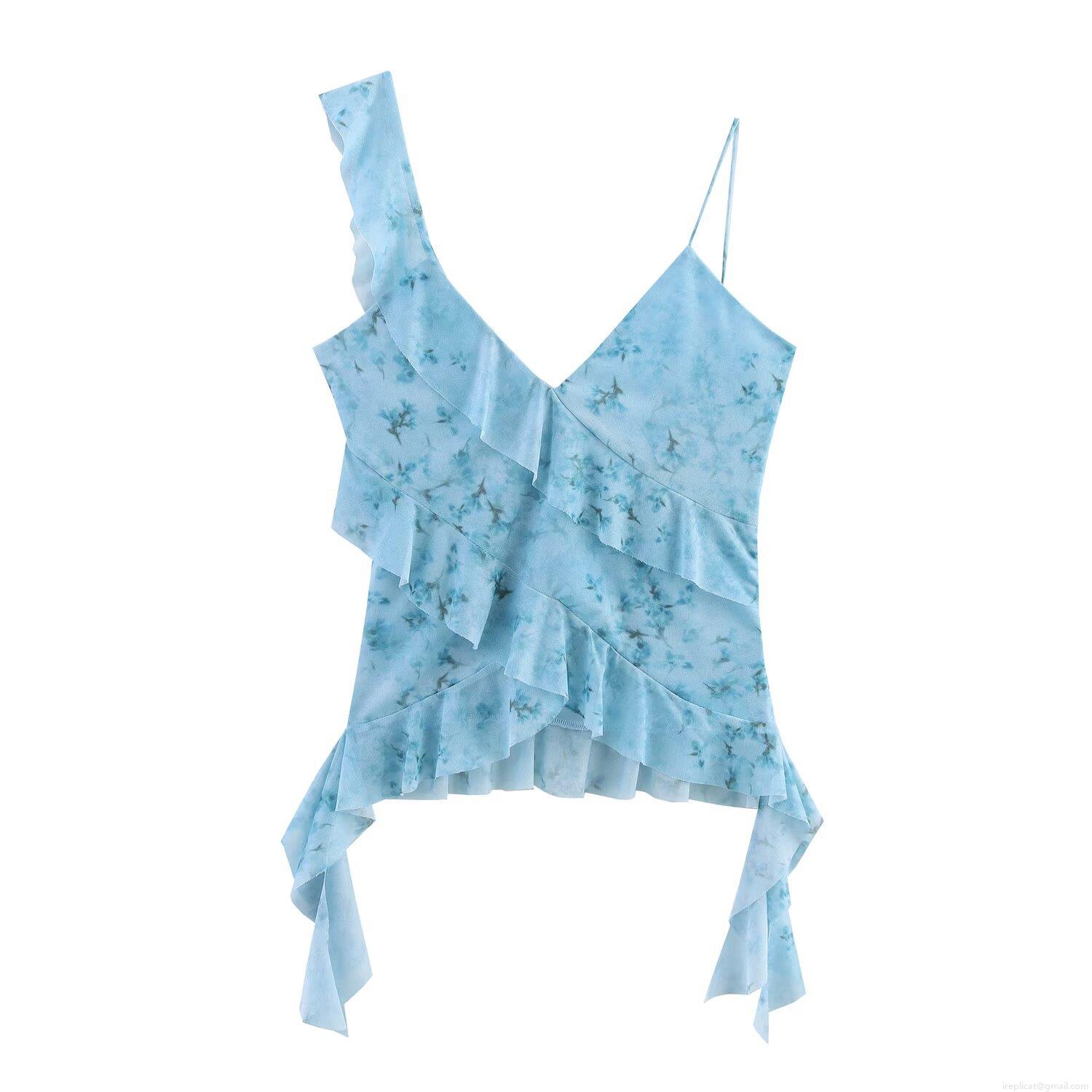 • Women's Sexy Mesh Chiffon Cami Top Ruffle Trim Asymmetrical Layered Floral Print Leopard Pattern Street Style Summer Beach Party Camisole For Women