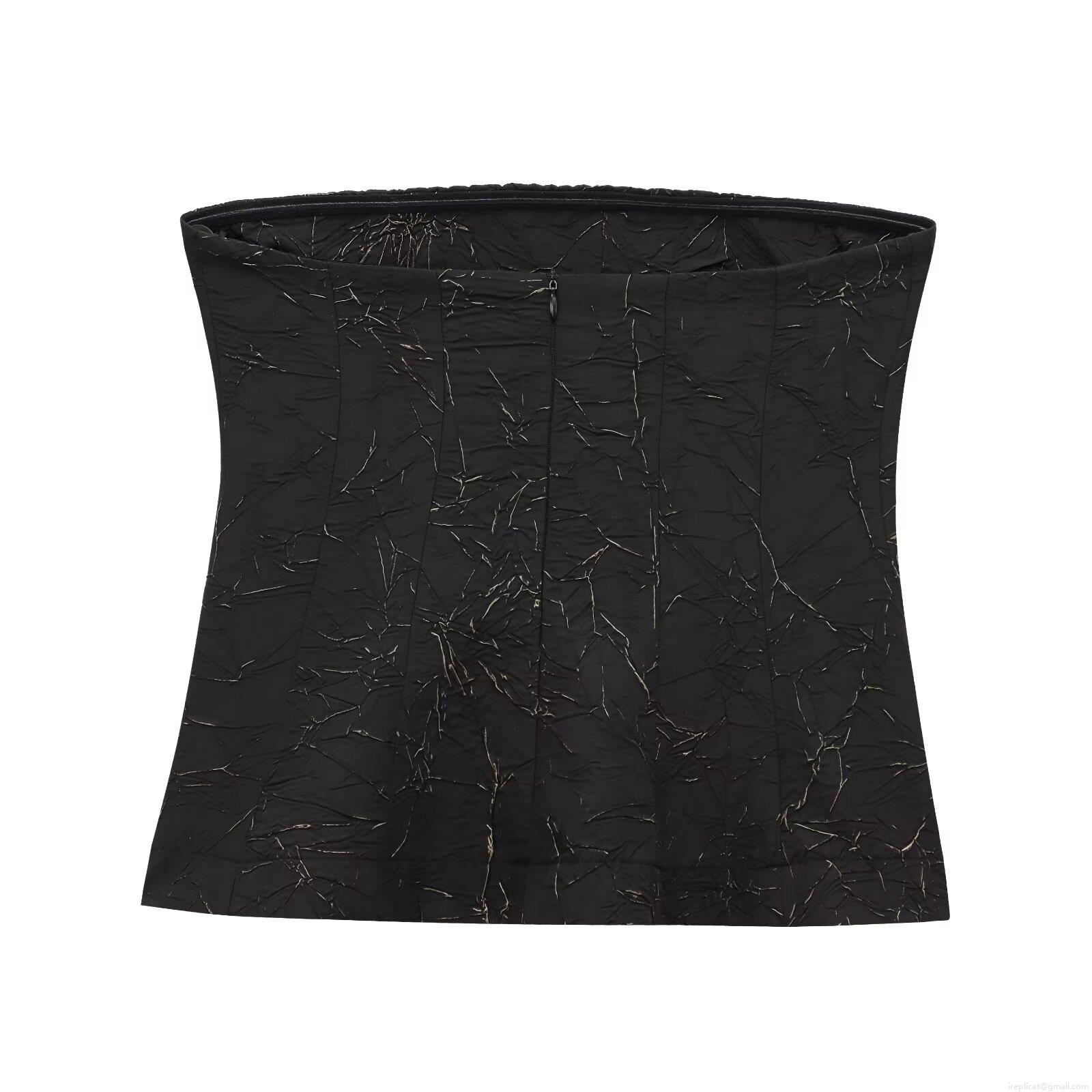 • Women's Sexy Metallic Cracked Texture Tube Top Strapless Pleated Slim Fit Back Zipper Crop Top Club Night Party Bandeau Streetwear