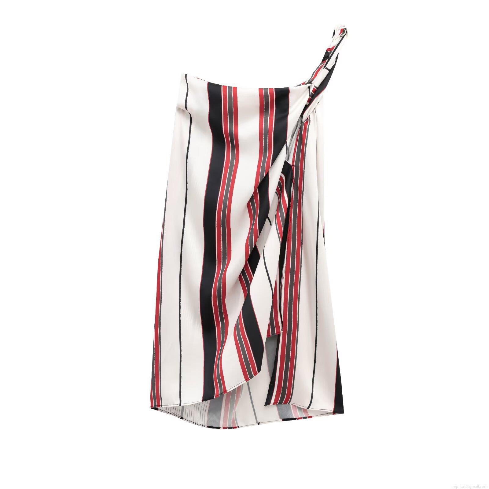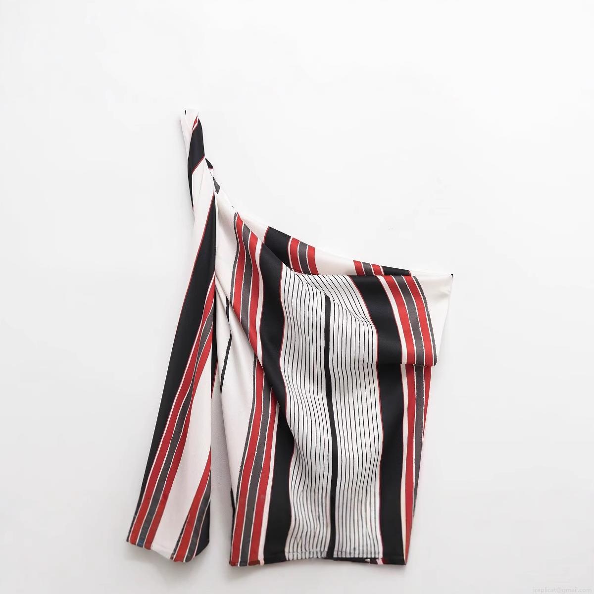 Stripe, One Shoulder, Asymmetrical Design, Satin Luster, Color-blocked Print