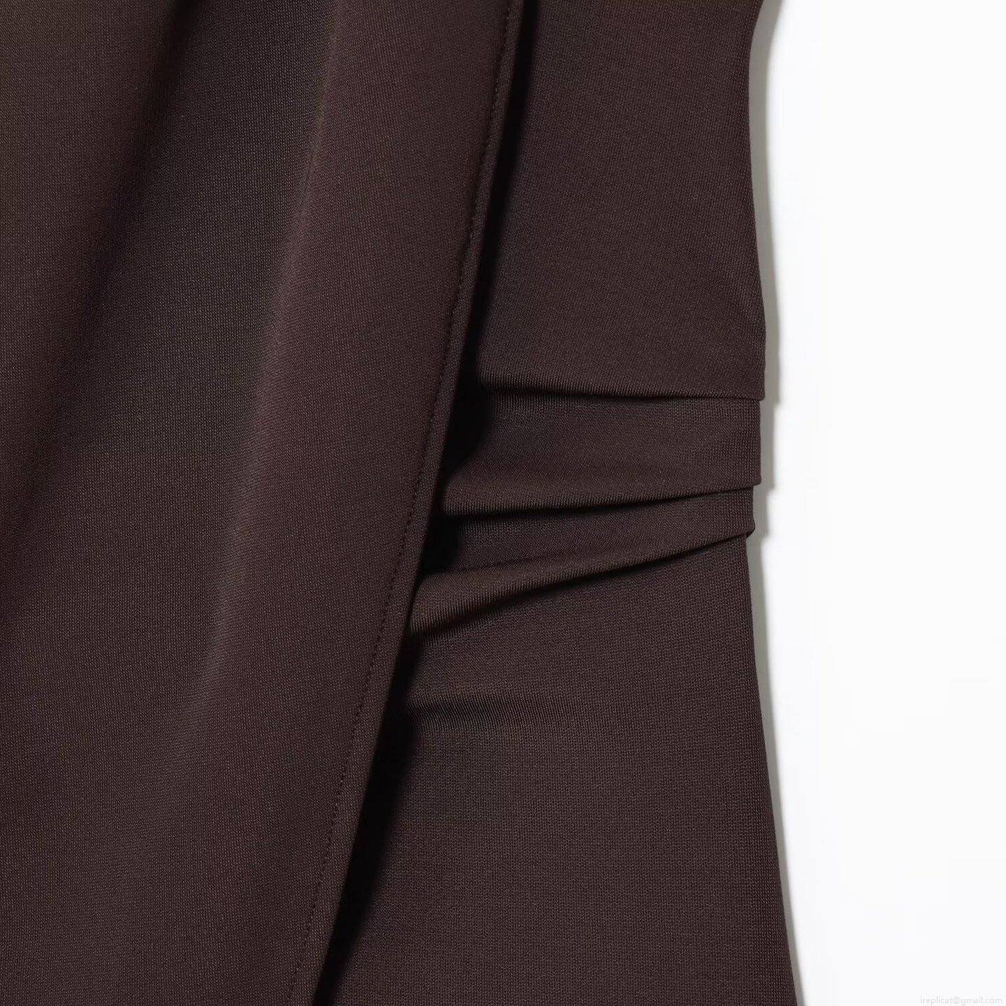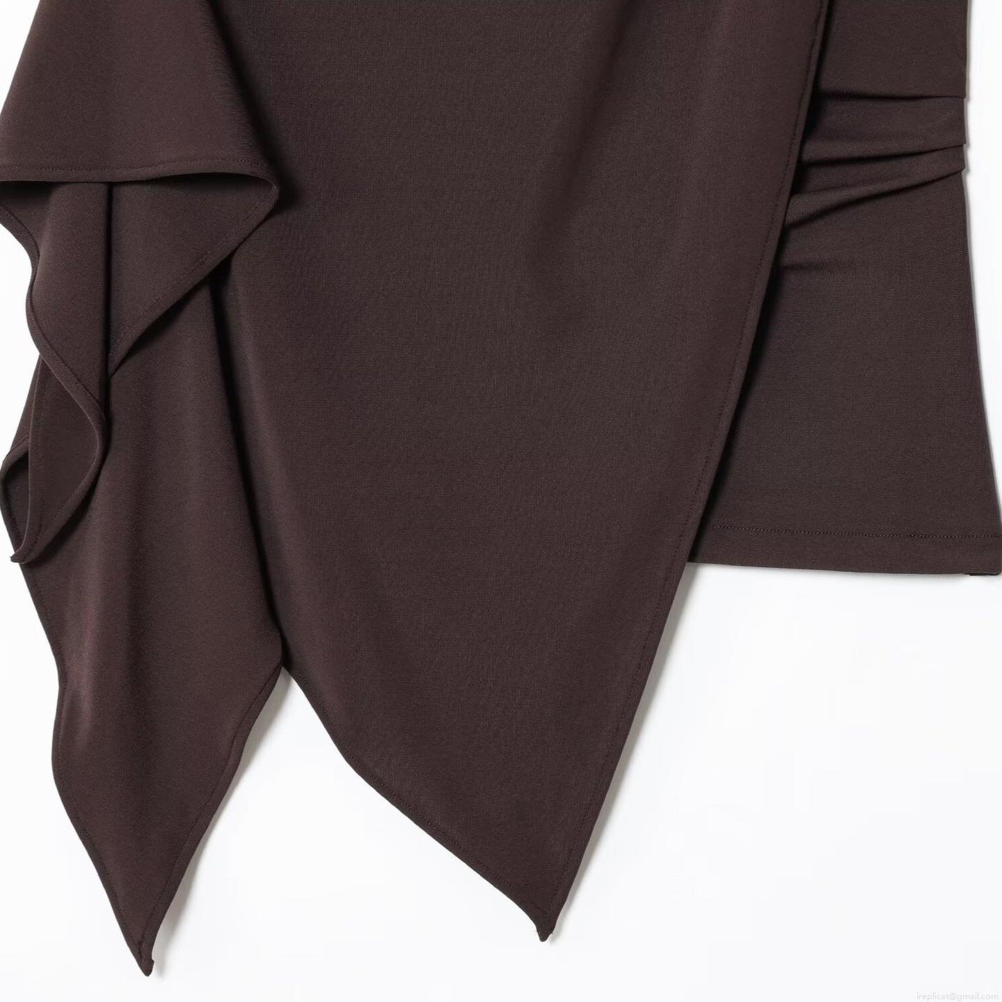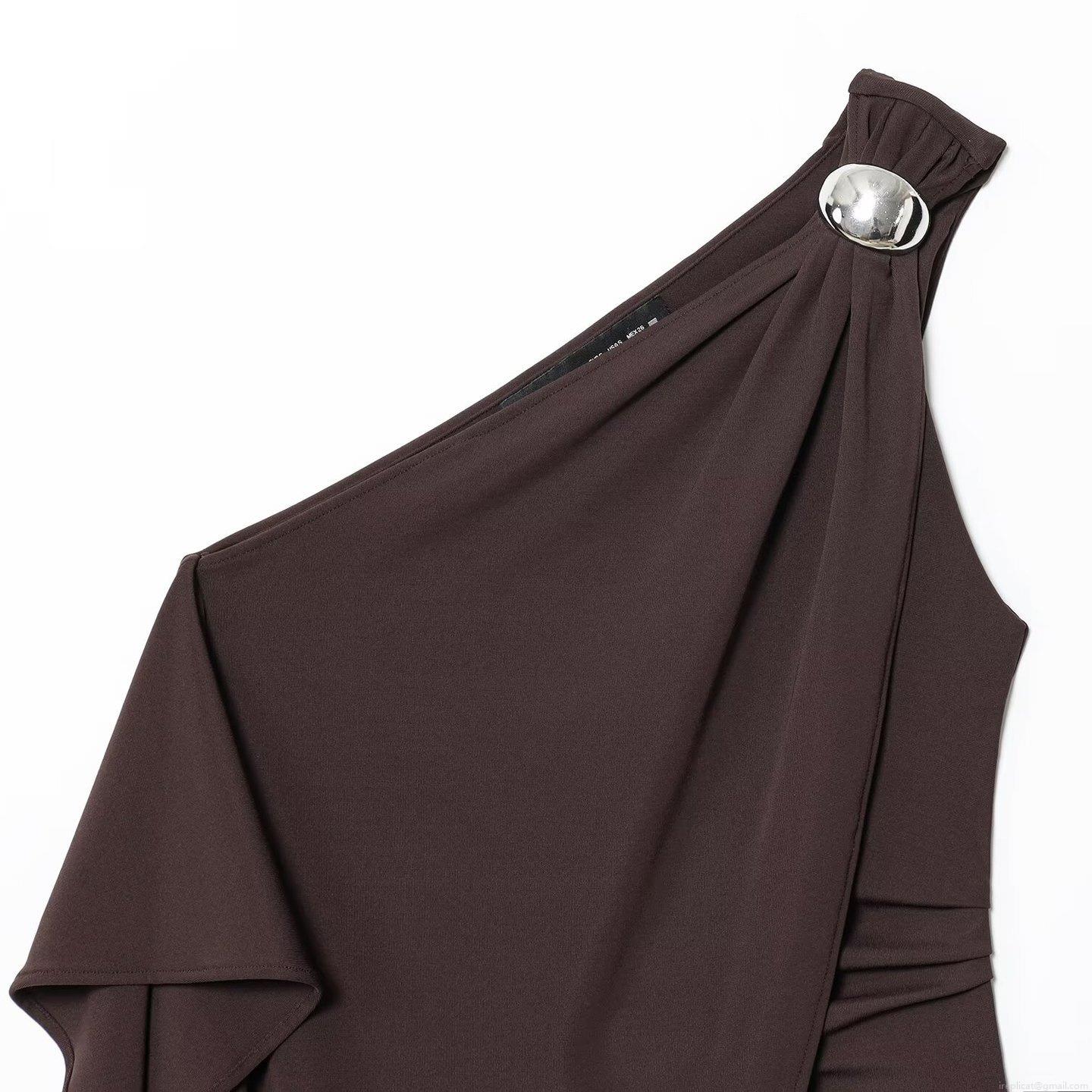 Solid Color, Backless, Sloping Shoulders, Metal Buckle Decoration, Asymmetrical Design, Side Pleats