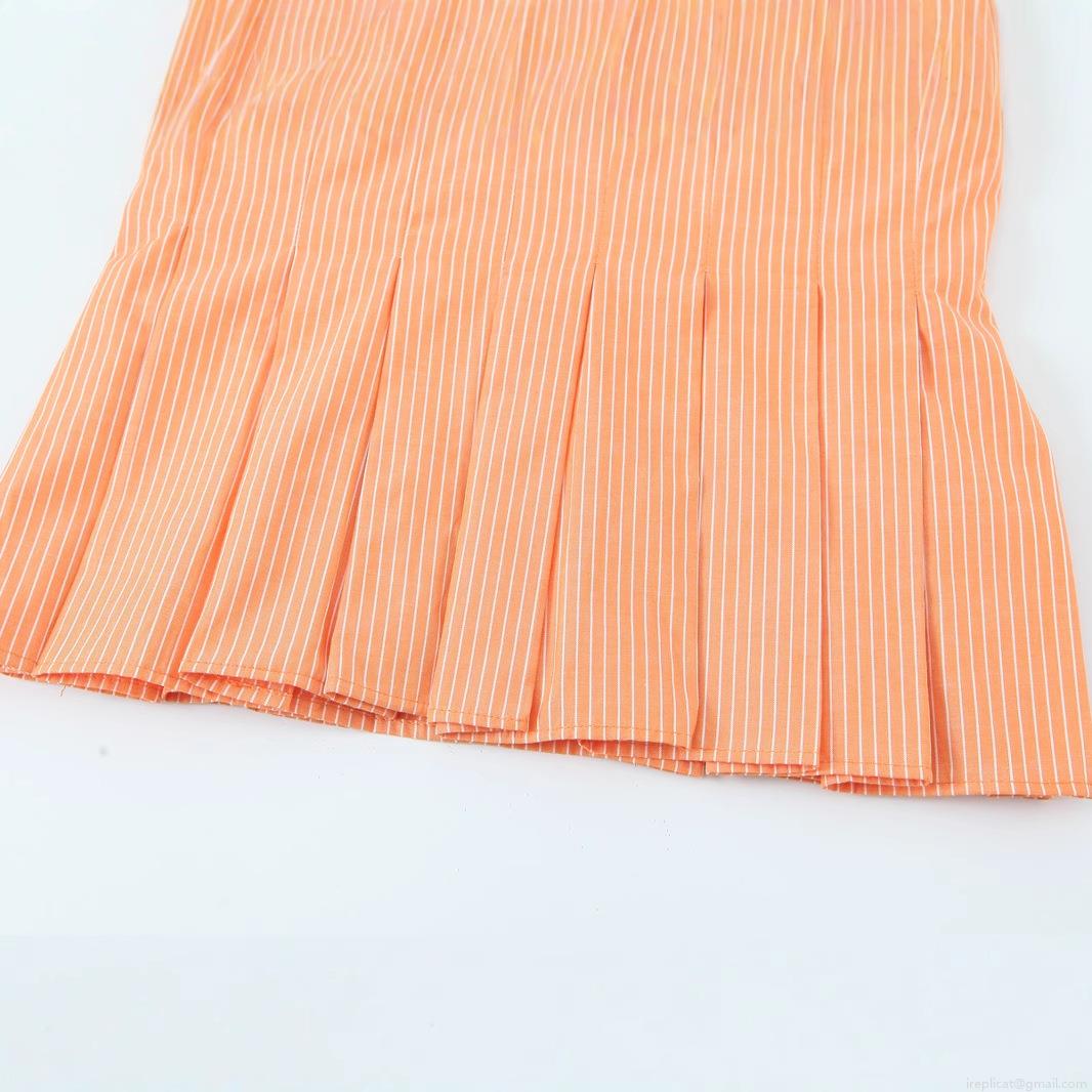 Women's Sexy Orange White Vertical Striped V-Neck Camisole Slim Fit Pleated Hem Strappy Top Summer Casual Sleeveless Polyester Poplin Blouse