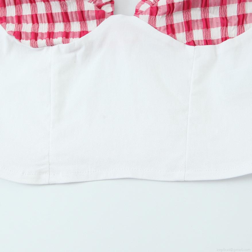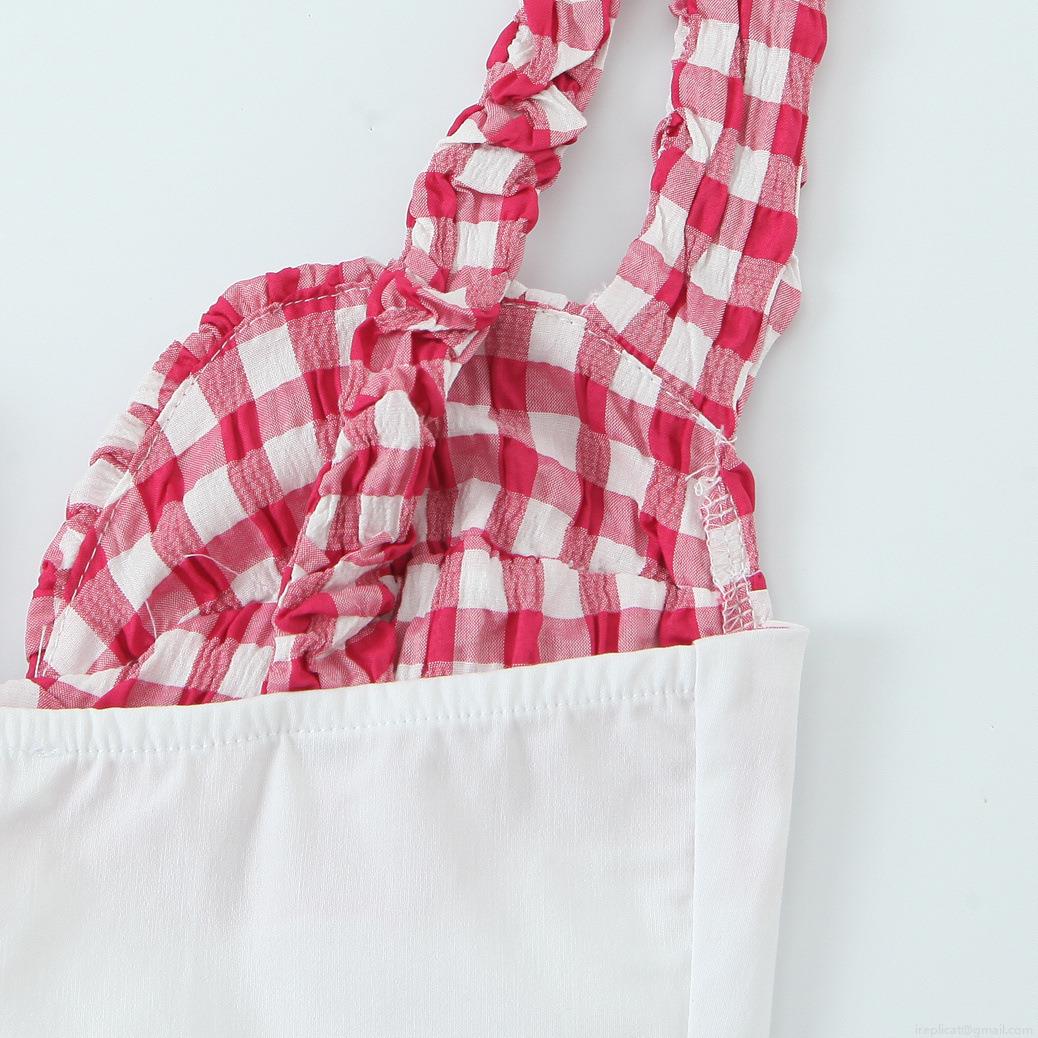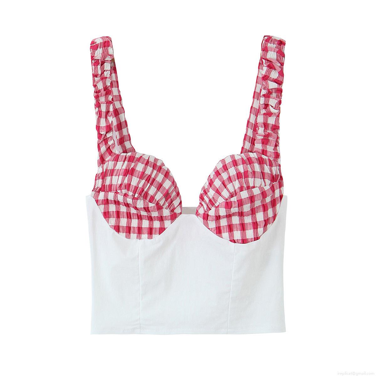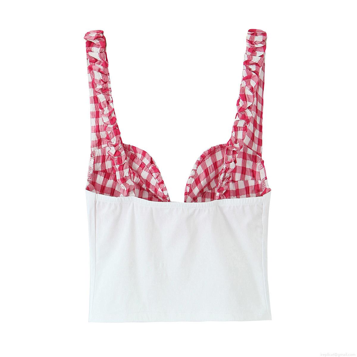 • Women's Sexy Plaid Patchwork Camisole Top Slim Fit V-Neck Ruffle Shoulder Straps Corset Style Short Crop Top Summer Sleeveless Shirt For Daily Dating Women