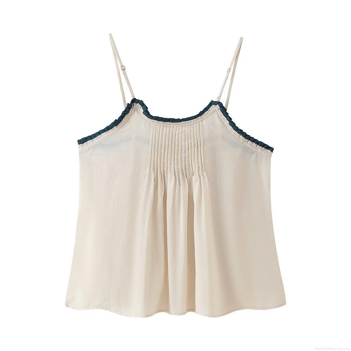 Color Blocking, Wood Ear Edge, Pleats, Bead, Drawstring, Wavy Edge, Thin Shoulder Straps