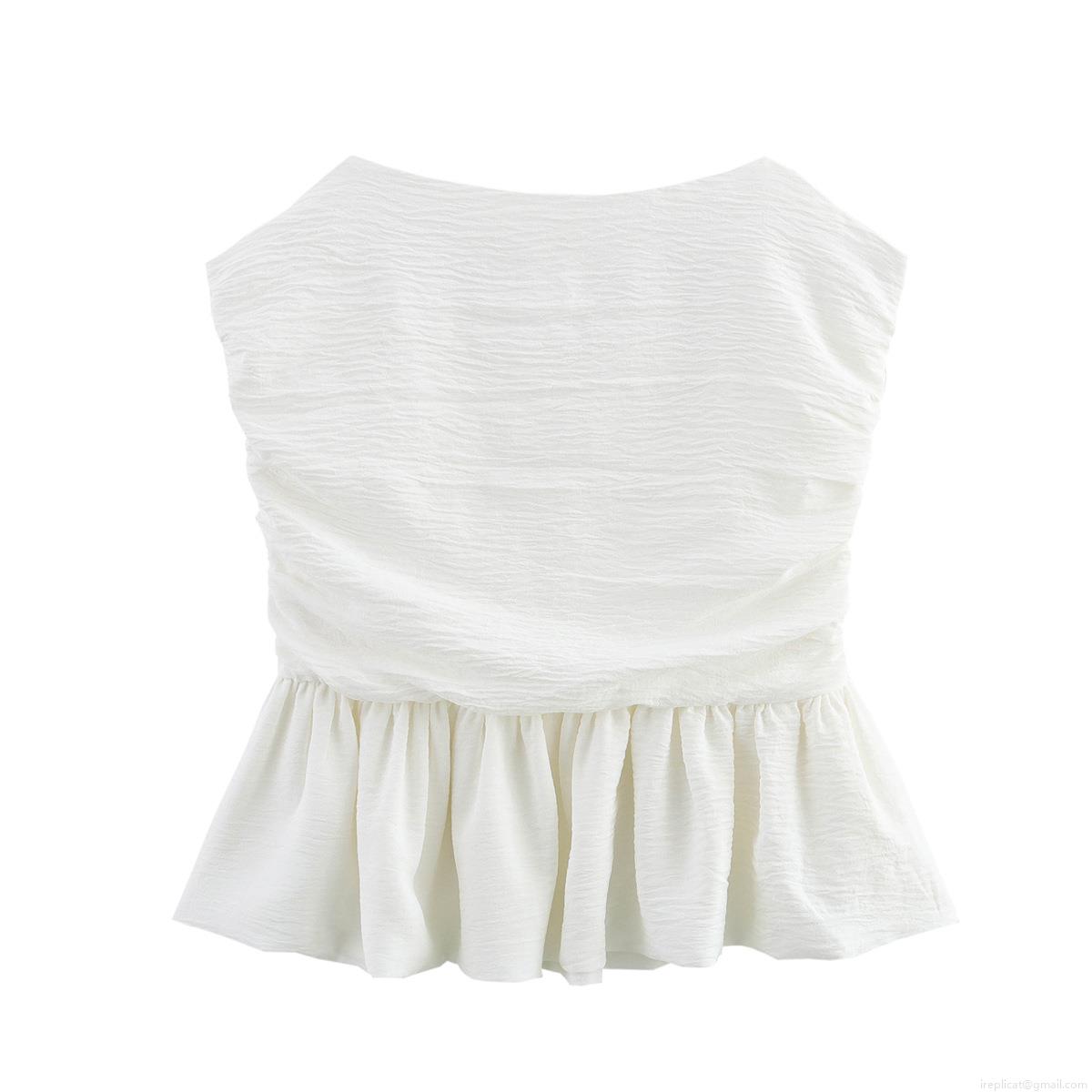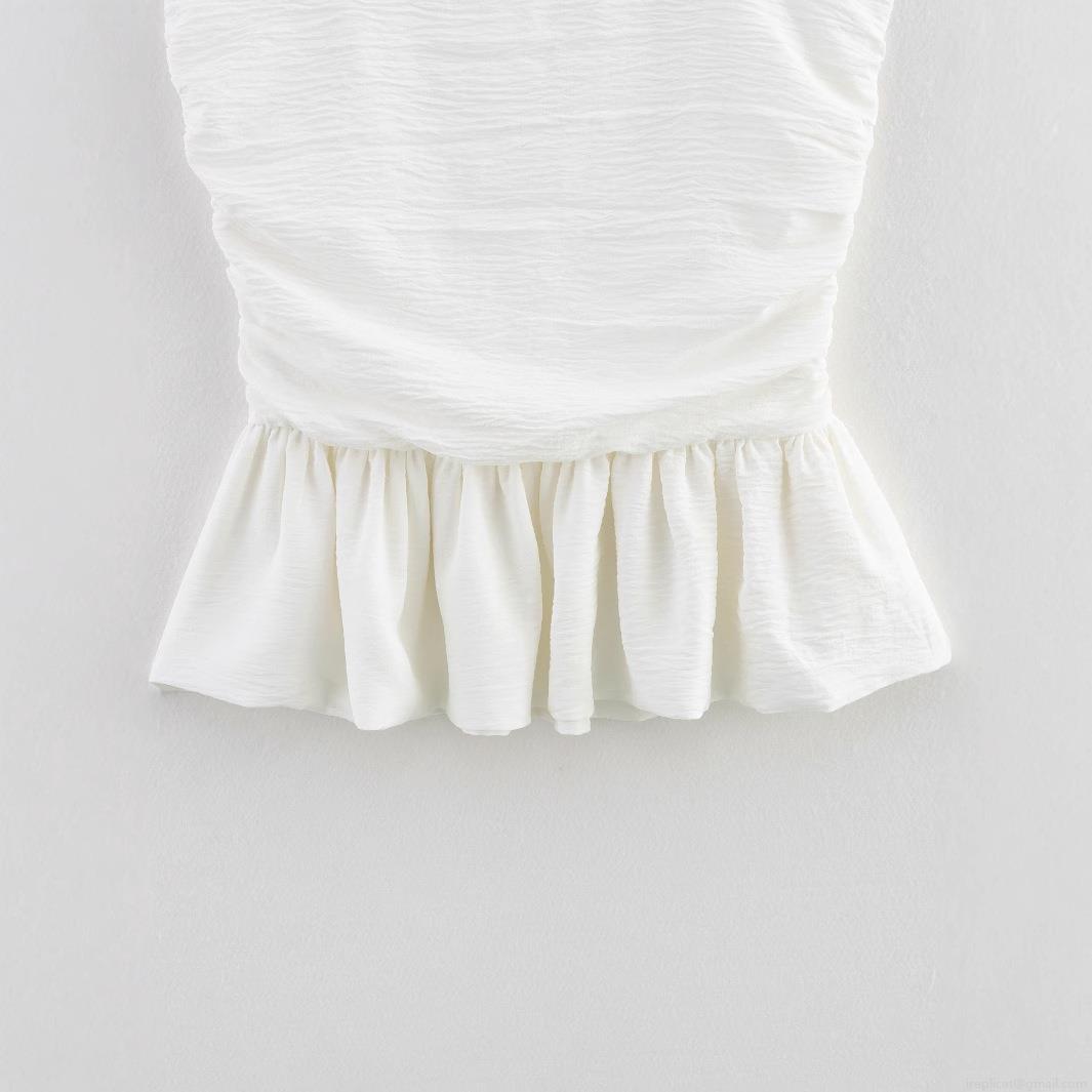 • Women's Sexy Pleated Tube Top Off-Shoulder Polyester Wave Edge Ruffle Hem Slim Fit Sweet Celebrity Style Backless Cropped Top for Summer Party Vacation Daily Wear