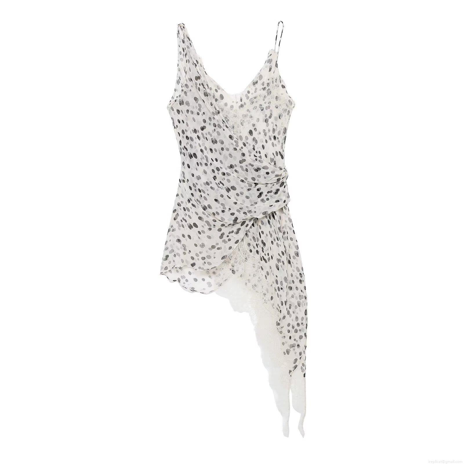 Polka Dots, Asymmetric, V-neck, Lace, Thin Straps, Pleats