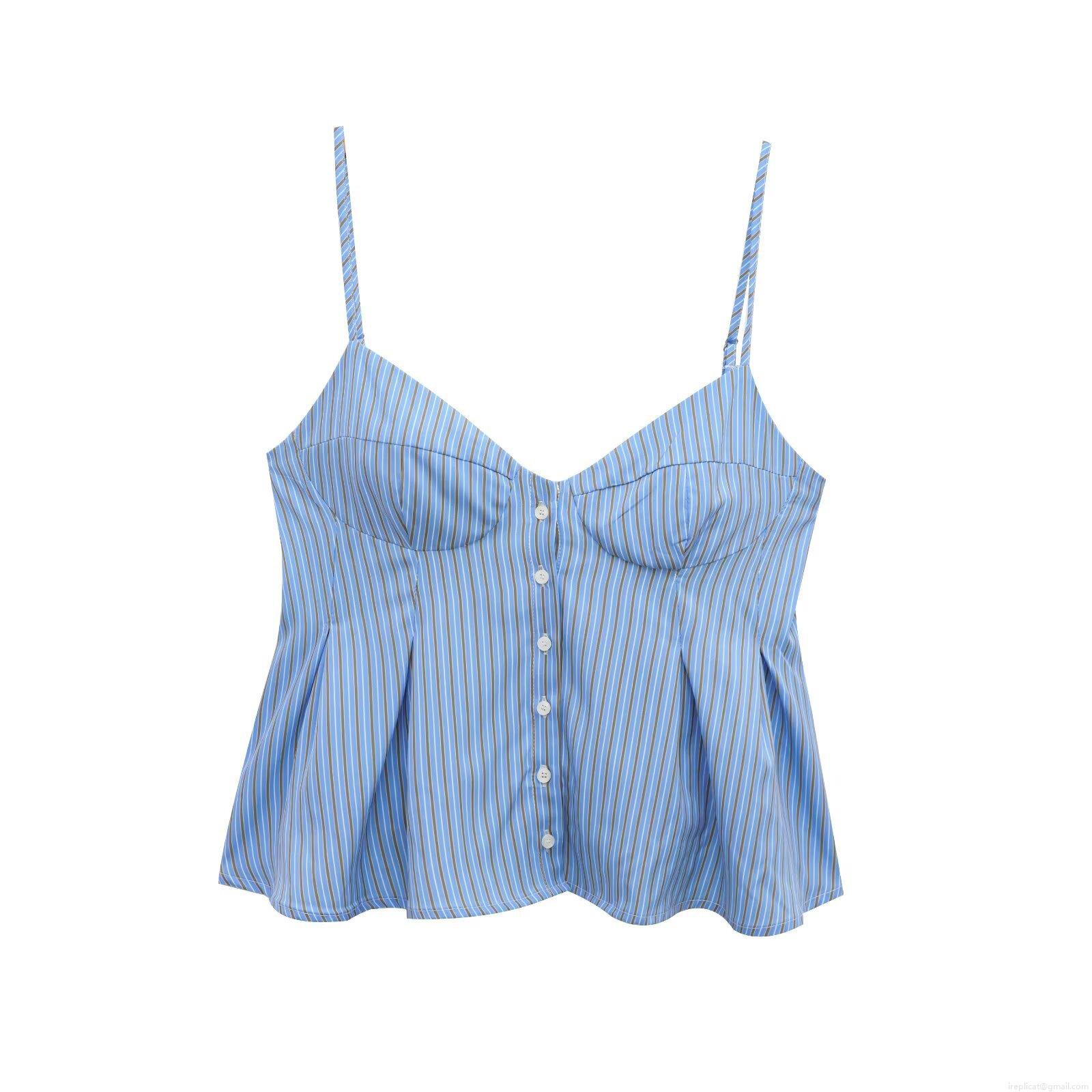 Women's Sexy Poplin Camisole Top Button Front Pleated Peplum Bustier Stripe Summer Spaghetti Strap Cami For Party Women
