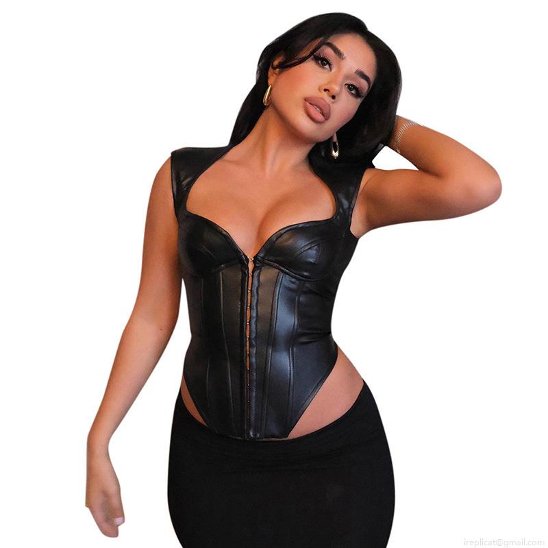 • Women's Sexy PU Leather Corset Top Fishbone Slim Fit Sleeveless Vest for Nightclub Party Street Style Vintage Faux Leather Bustier Top