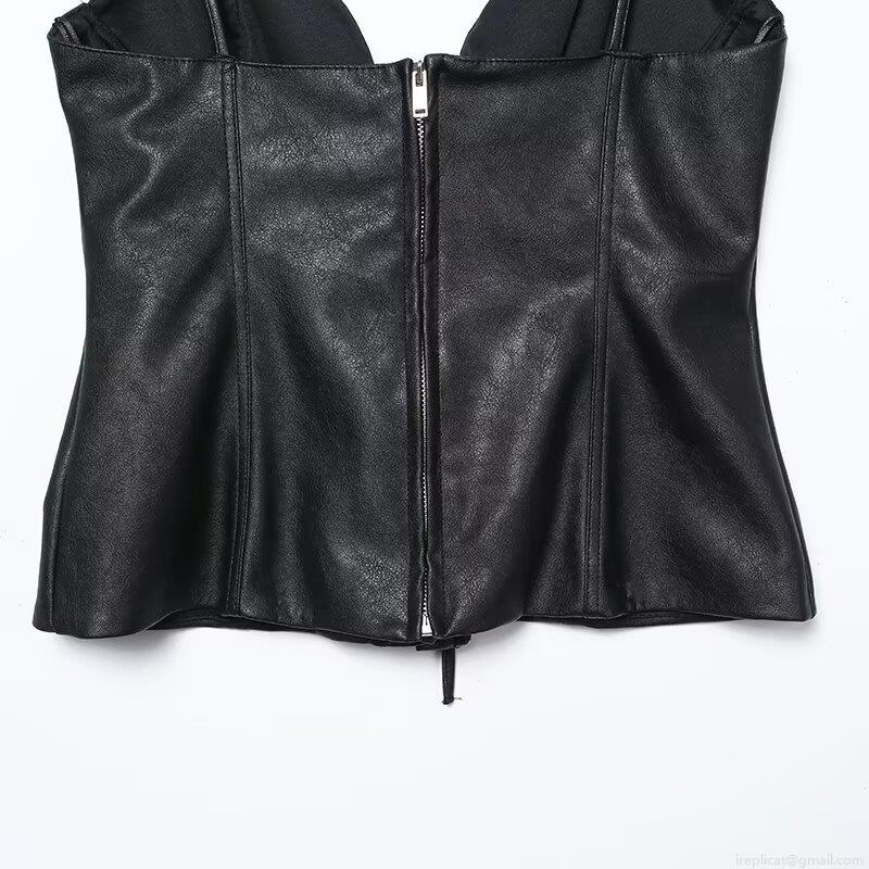 • Women's Sexy PU Leather Lace-up Camisole Top With Back Zipper V-Neck Sleeveless Slim Fit Crop Top For Party Nightclub Streetwear