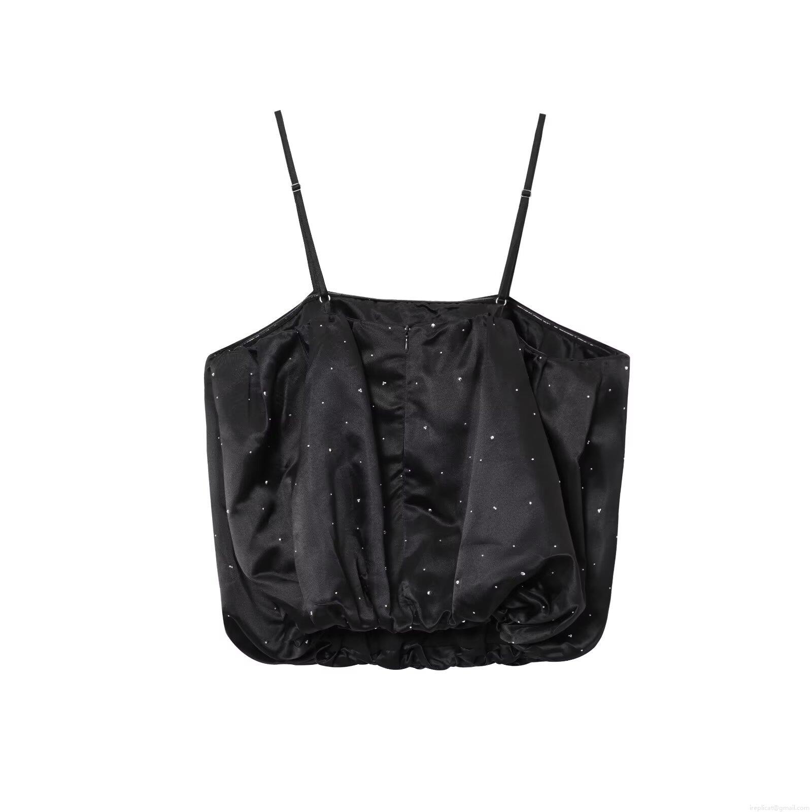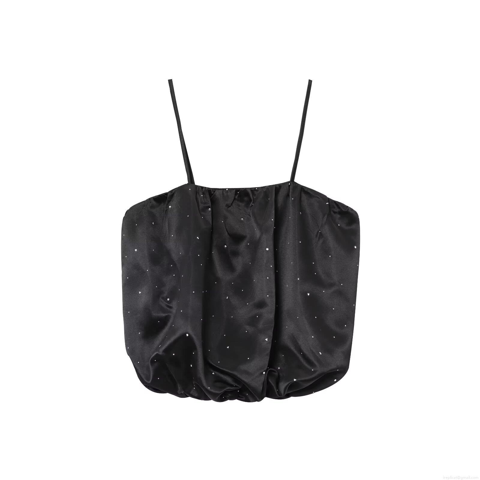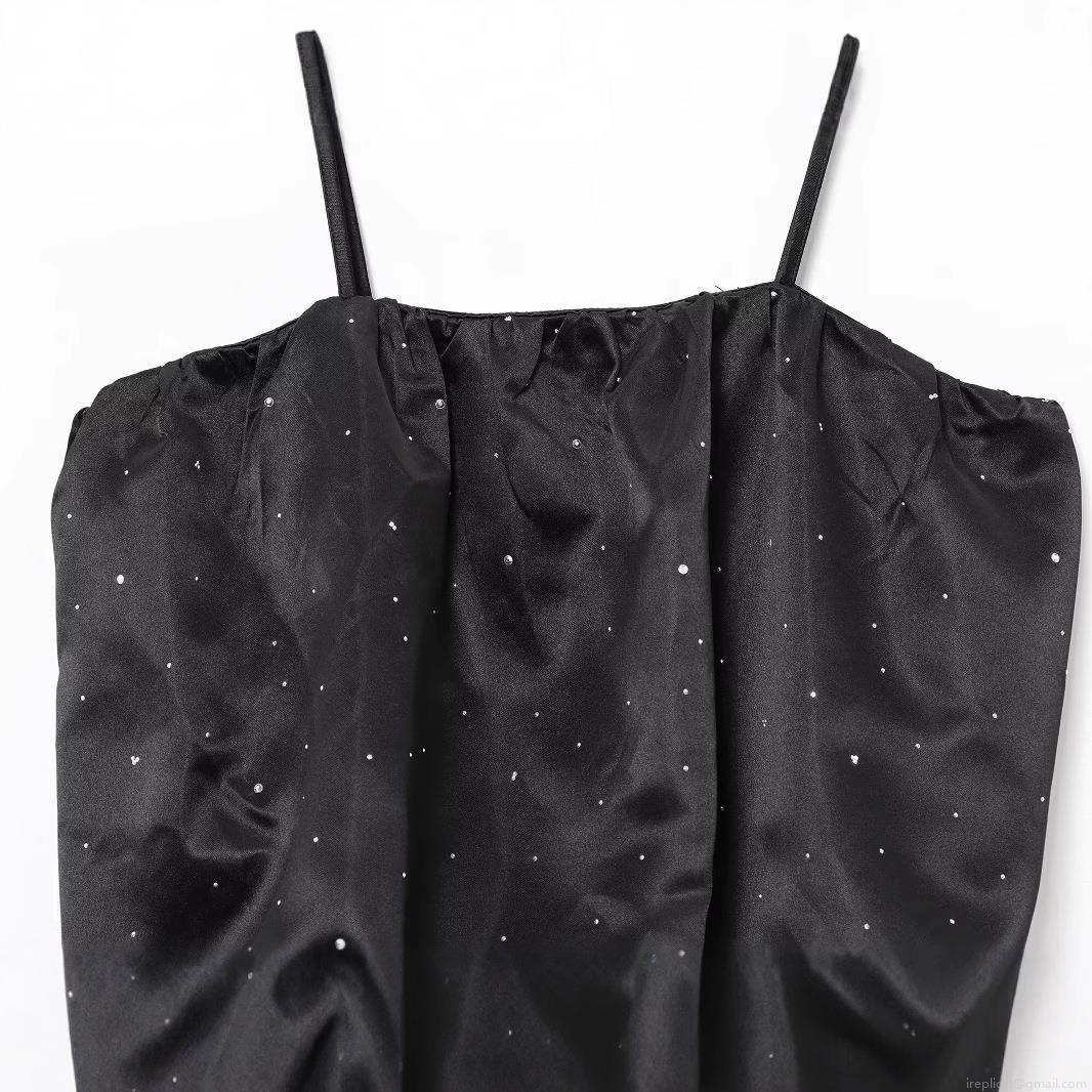 • Women's Sexy Rhinestone Satin Camisole Top Slim Fit Bubble Hem Sling Tank Top Elegant Strapless Tube Top for Party Club Night Out Socialite Style Sleeveless Blouse