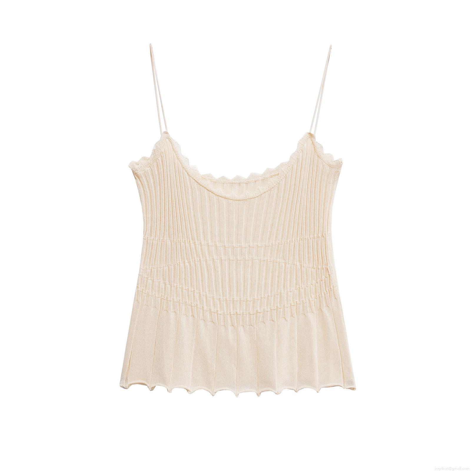• Women's Sexy Ribbed Knitted Camisole With Lace Trim V-Neck Spaghetti Strap Tank Top Lettuce Edge Sleeveless Vest For Summer Casual Streetwear