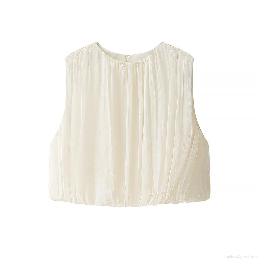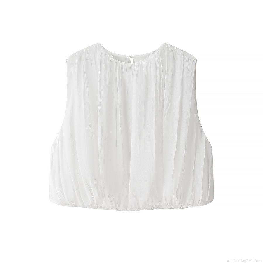 • Women's Sexy Round Neck Sleeveless Top Pleated Polyester Mesh Bubble Hem Blouse Elegant Solid Color Summer Casual Party Tank Top For Women