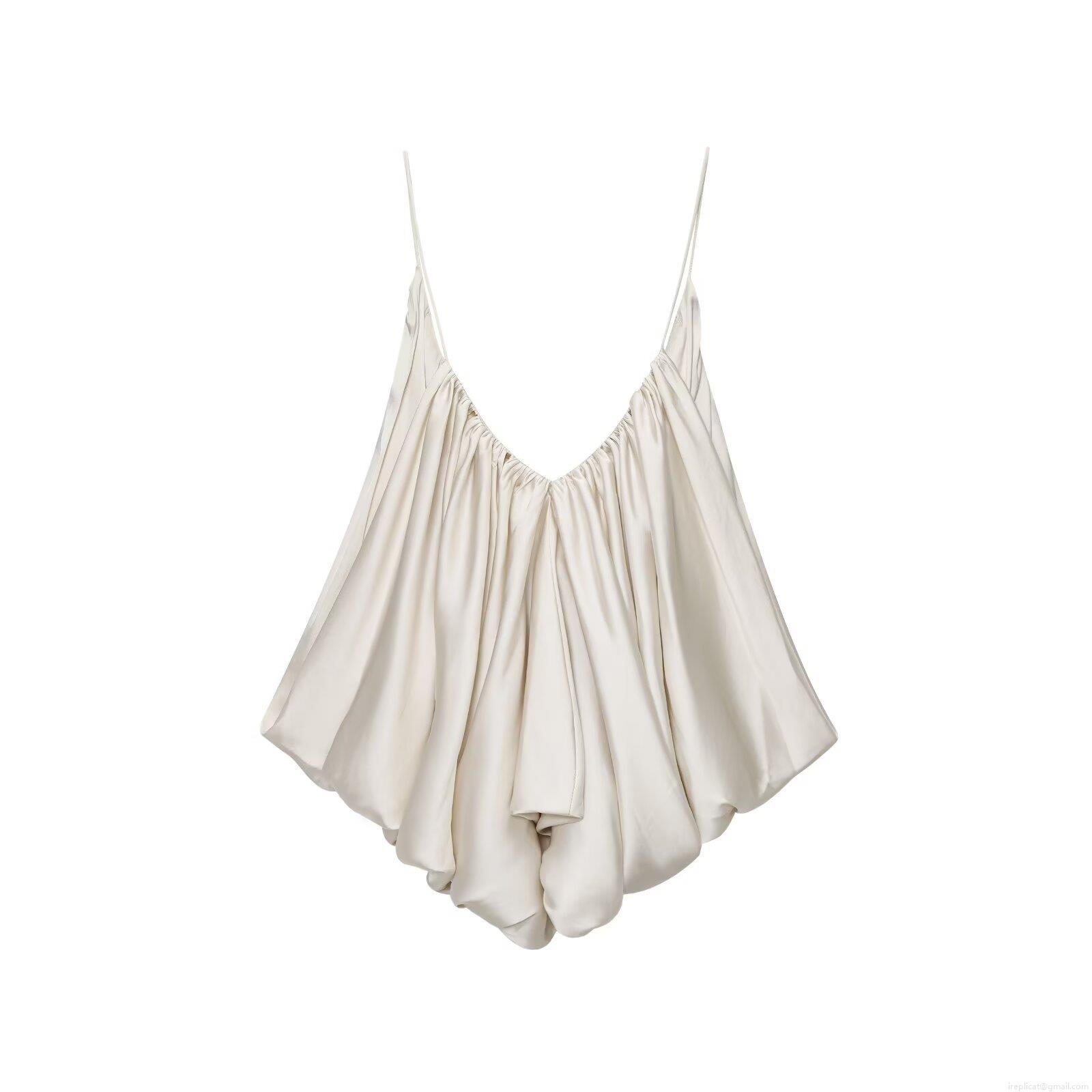 • Women's Sexy Ruched Silk Satin Camisole V-Neck Spaghetti Strap Tank Top Solid Pearl White Elegant Slim Fit Pleated Cami Top For Party Streetwear