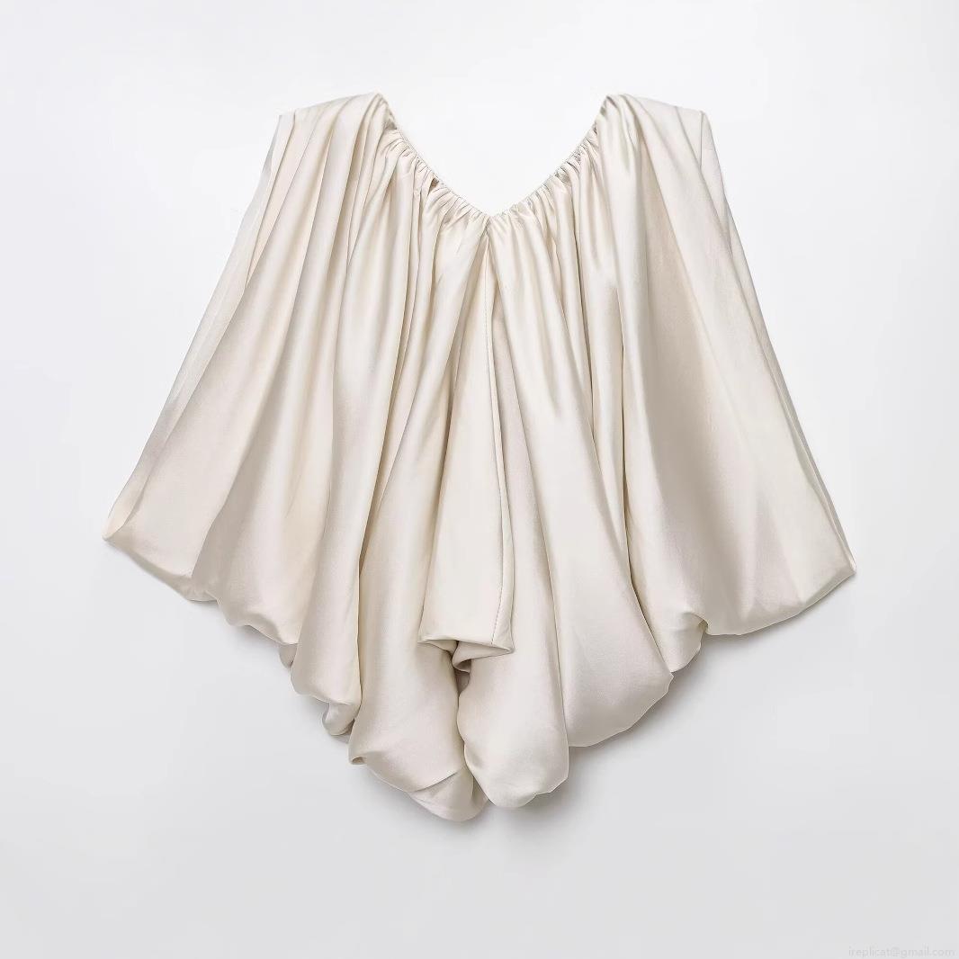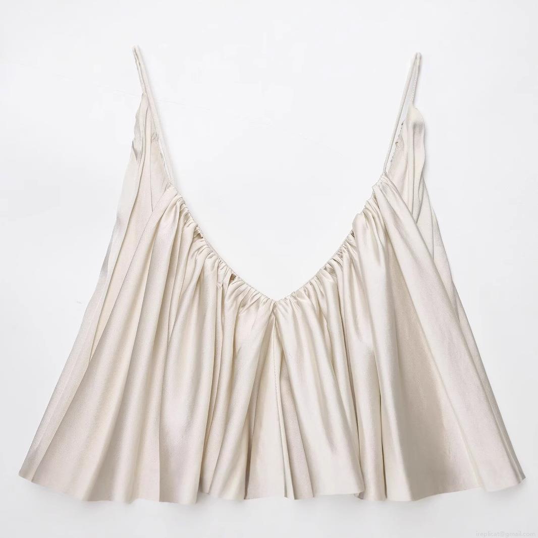 Solid Color, Pleats, Satin Finish, Thin Shoulder Straps