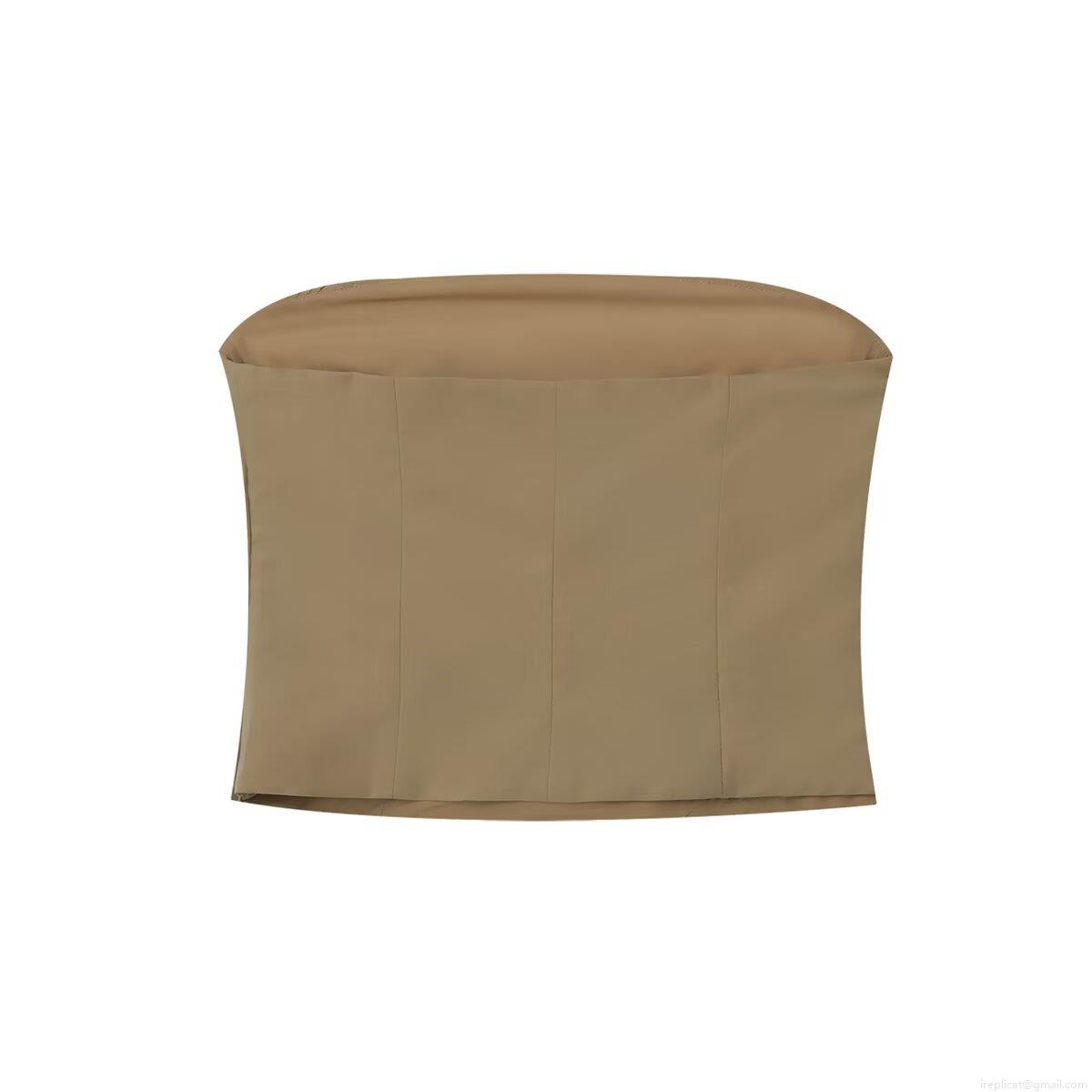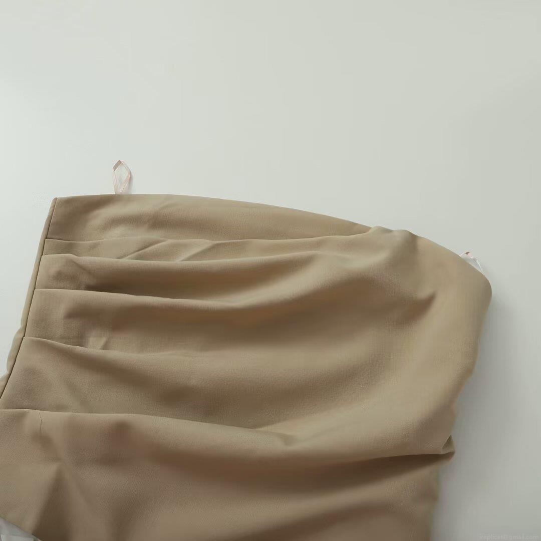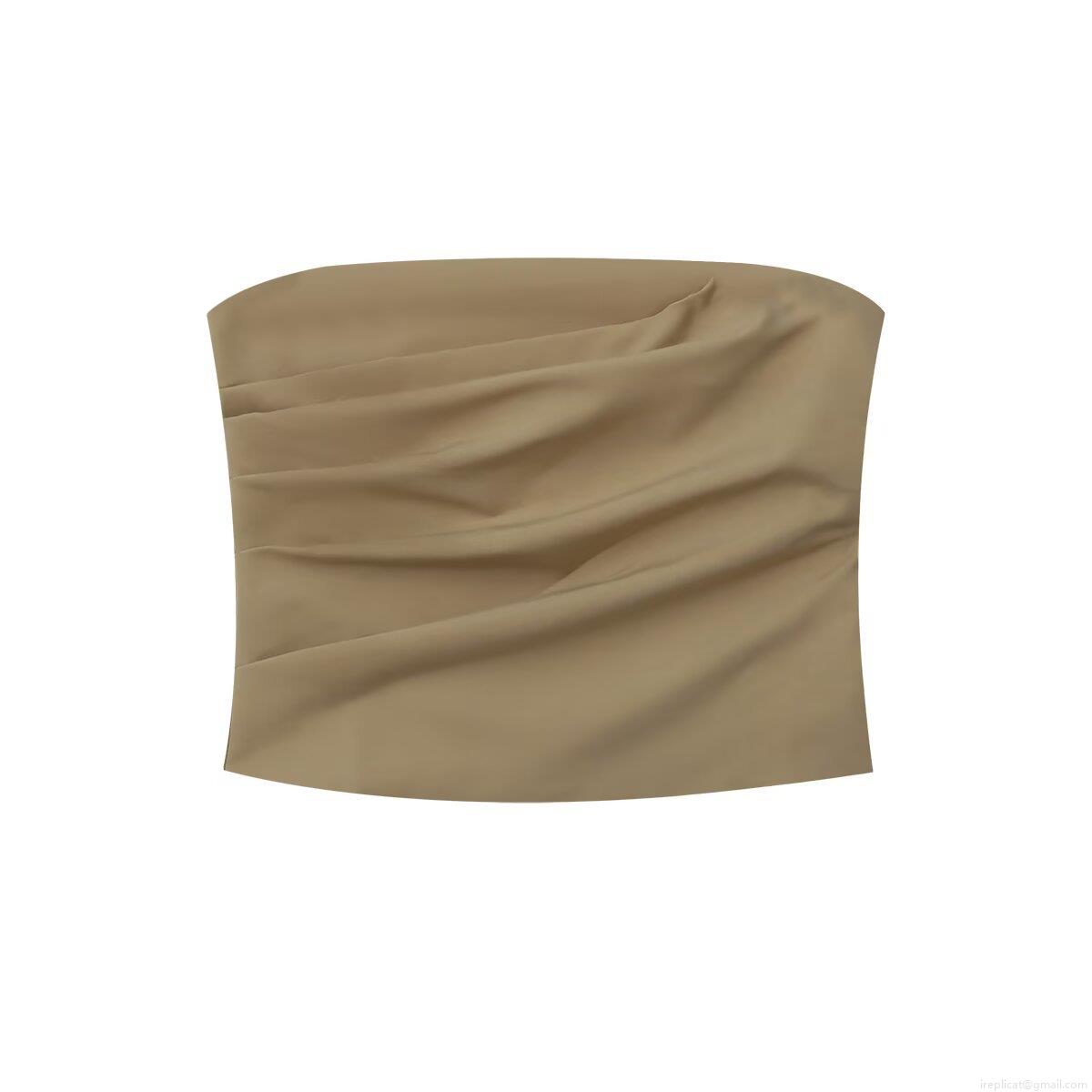 • Women's Sexy Ruched Strapless Tube Top Khaki Solid Color Polyester Slim Fit Crop Top Sleeveless Summer Streetwear Fashion Vest for Women Daily Party