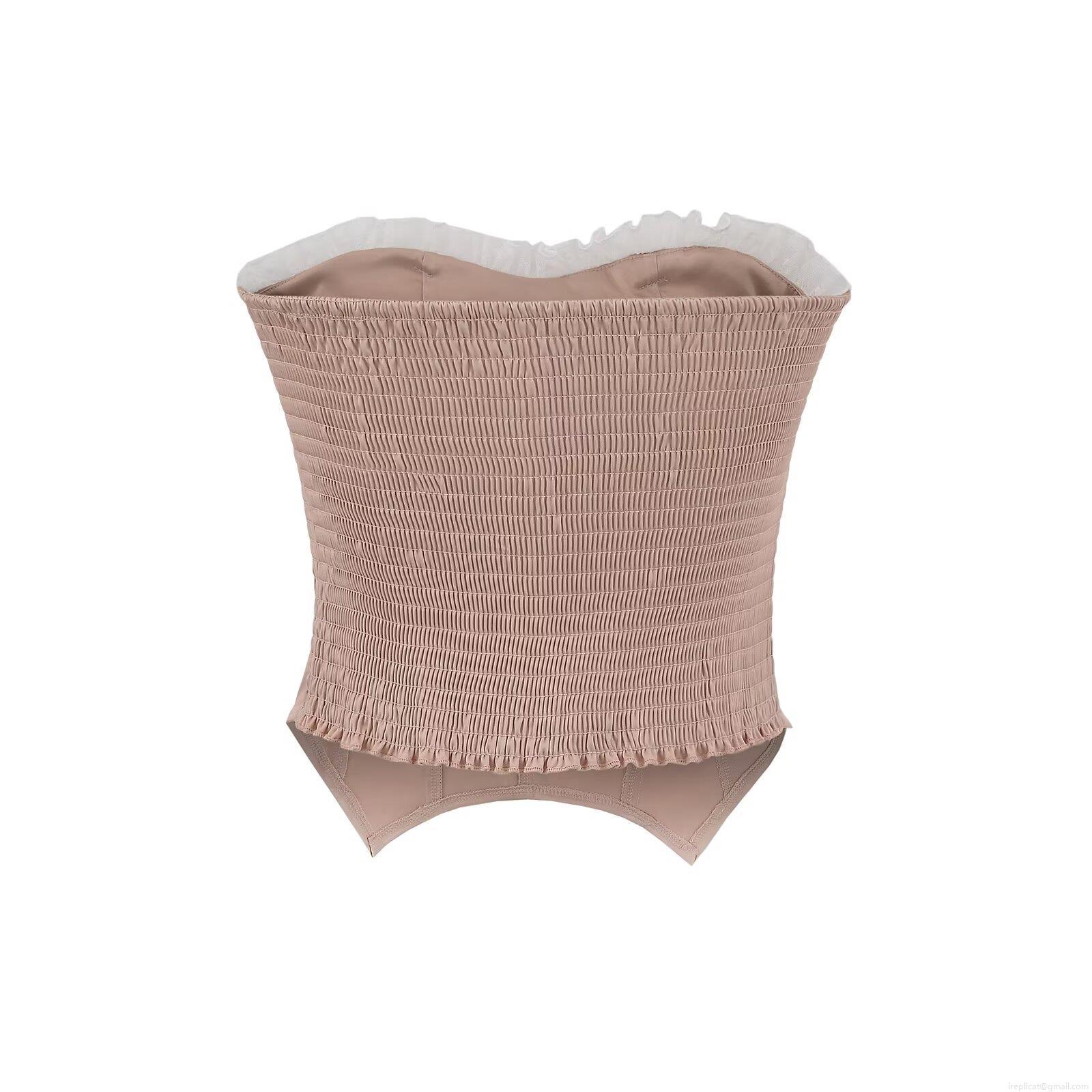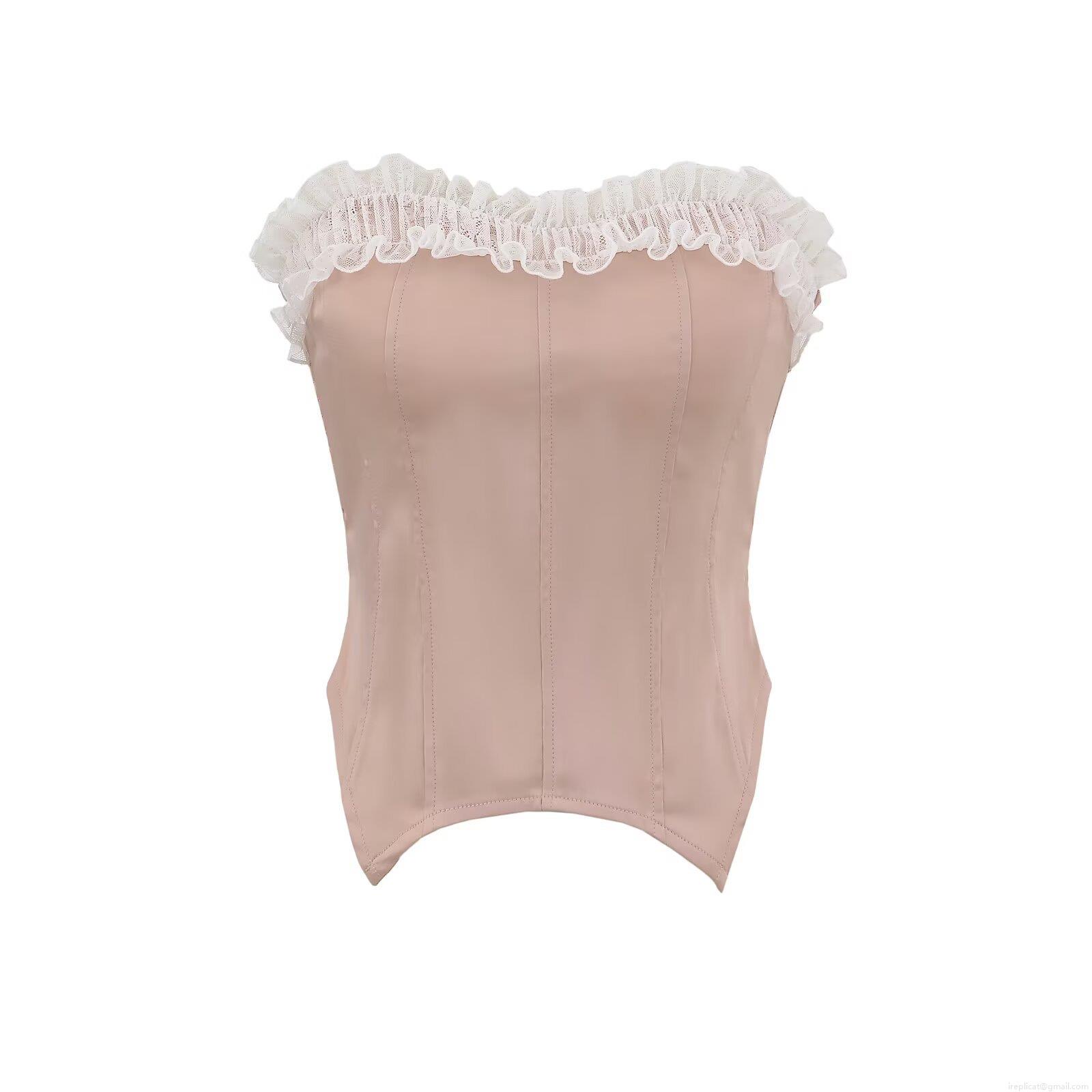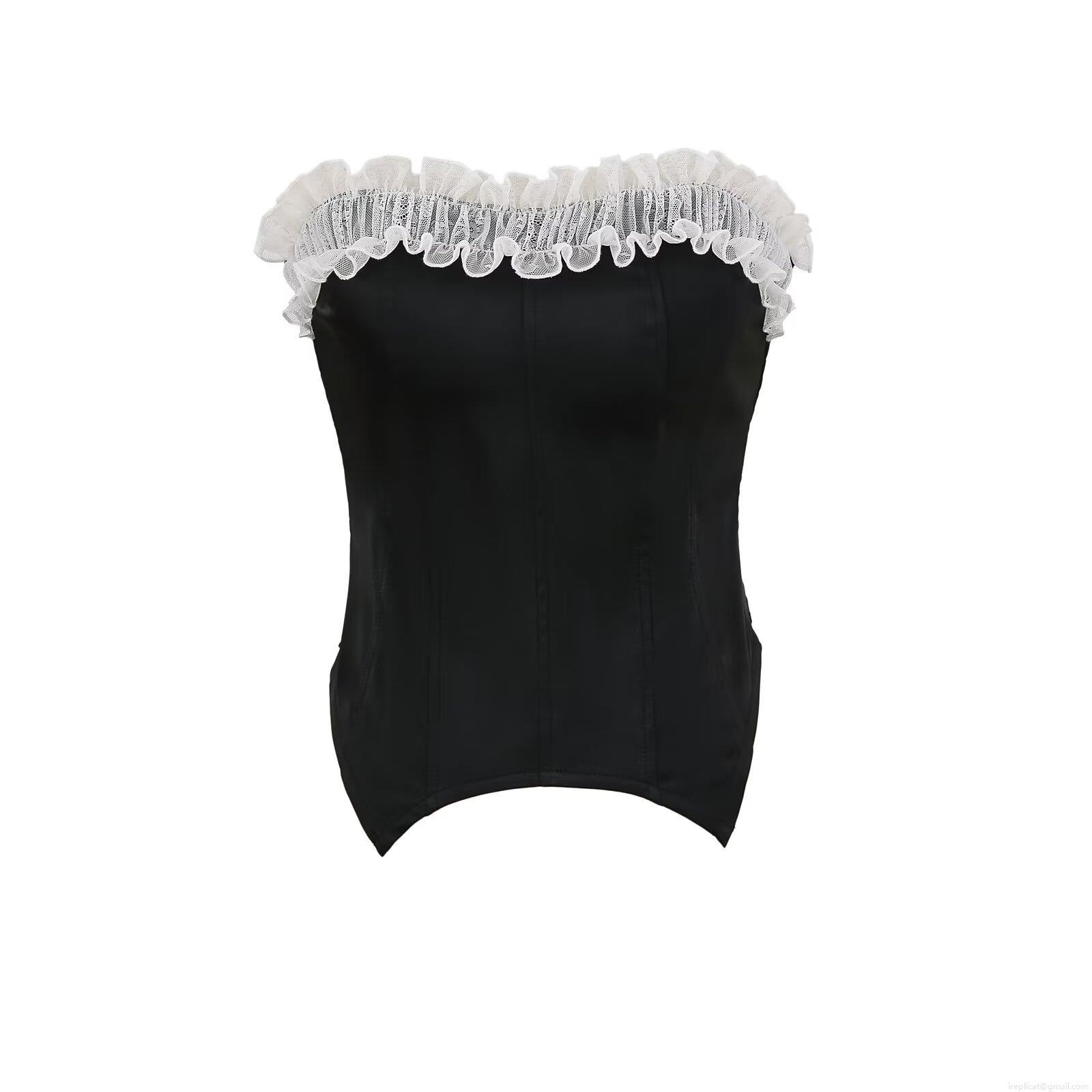Women's Sexy Satin Corset Top With White Lace Trim Strapless Fishbone Support Slim Fit Cropped Tube Top Party Clubwear Summer Camisole