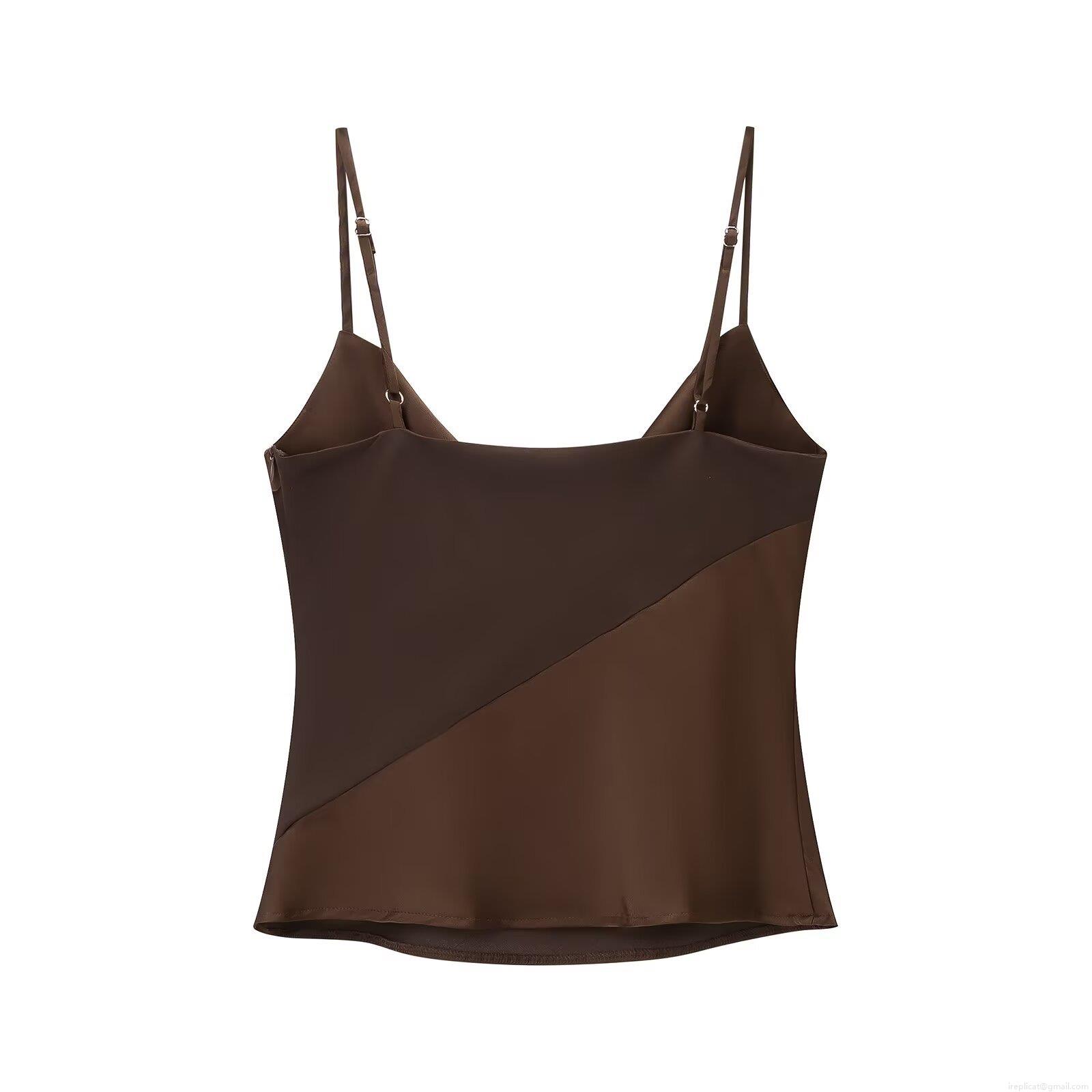 Solid Color, Splice, Satin Texture, Adjustable Thin Shoulder Straps, Draped Collar