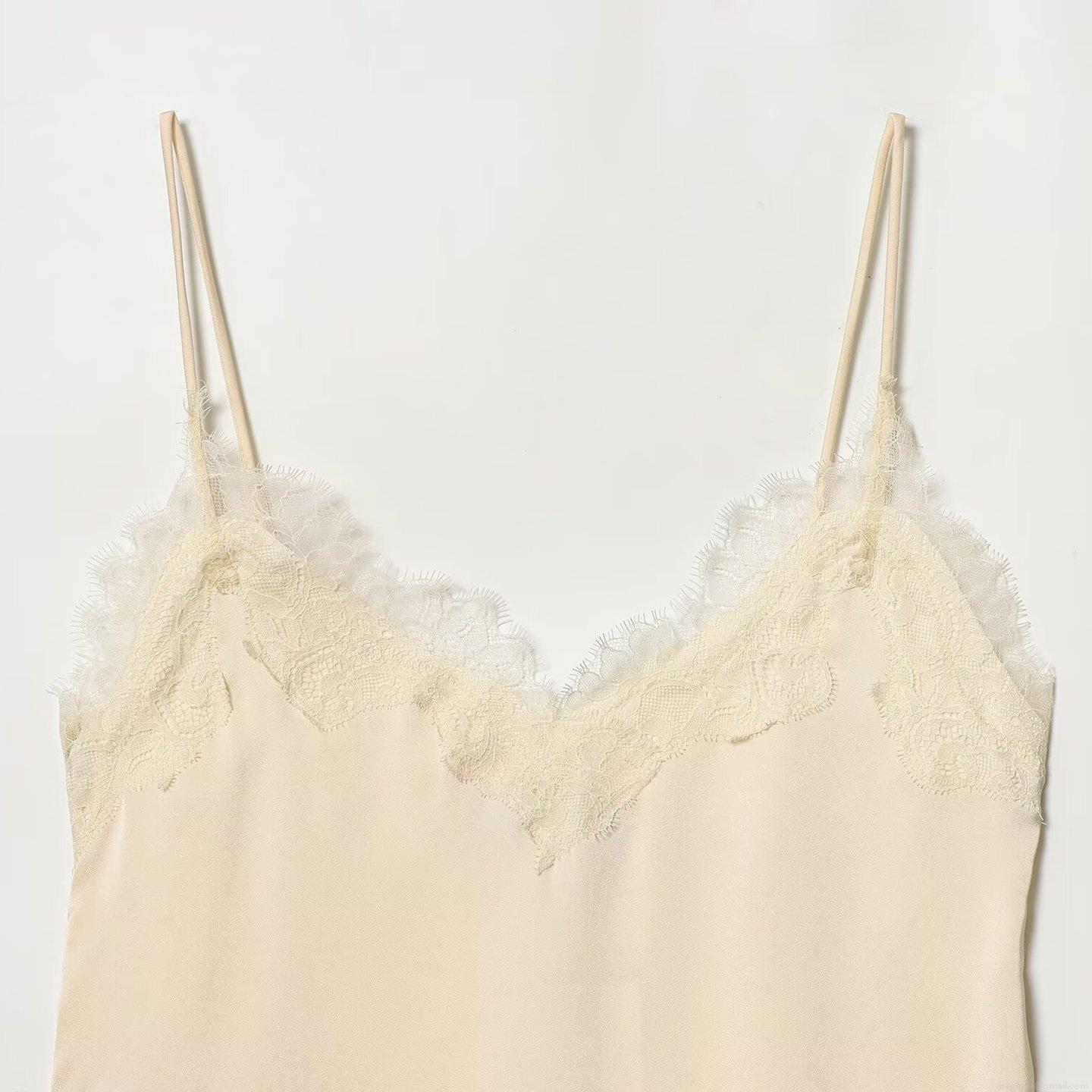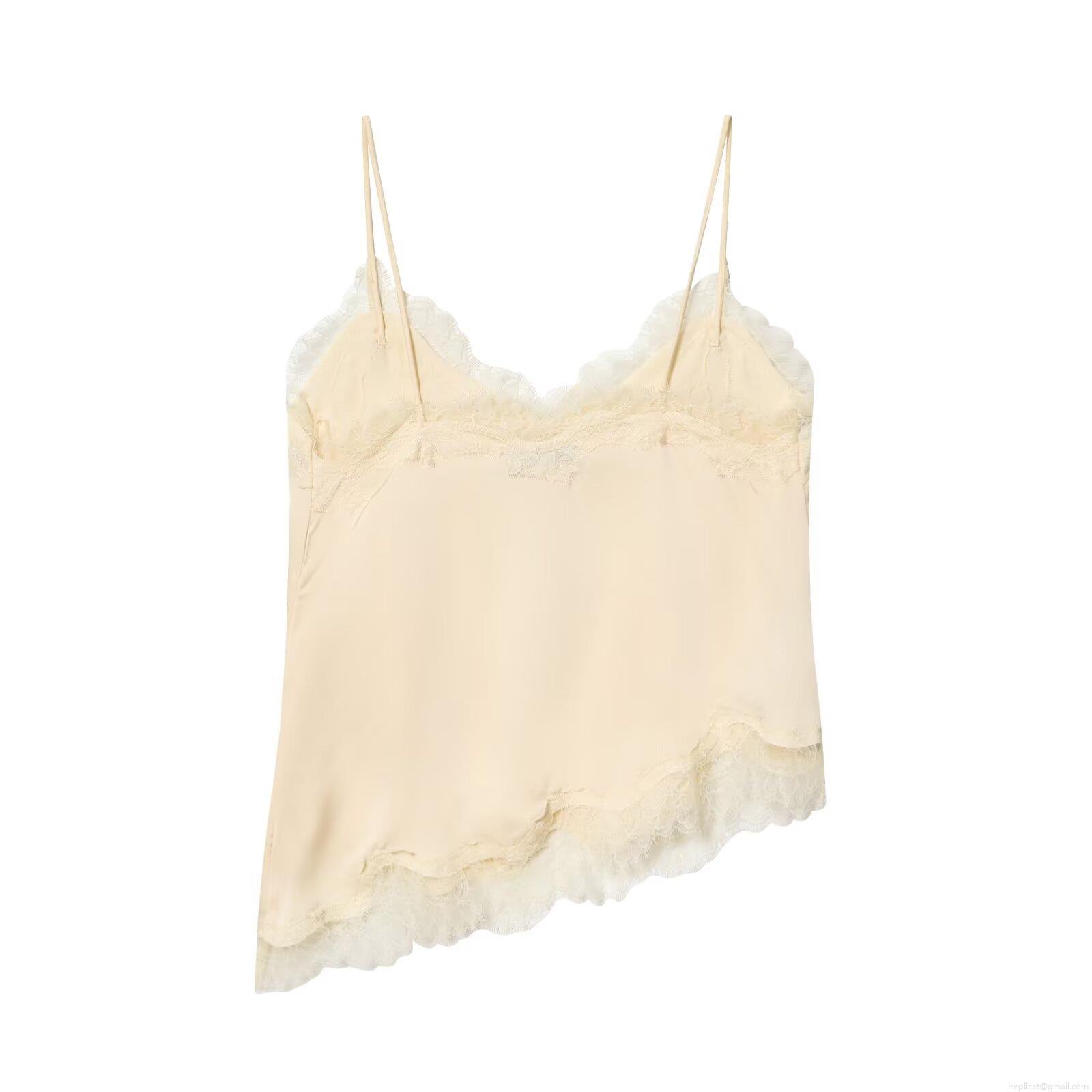 Women's Sexy Satin Lace Patchwork V-Neck Cami Top Elegant Solid Color Sleeveless Asymmetric Hem Tank Top For Party Club Dating Lady