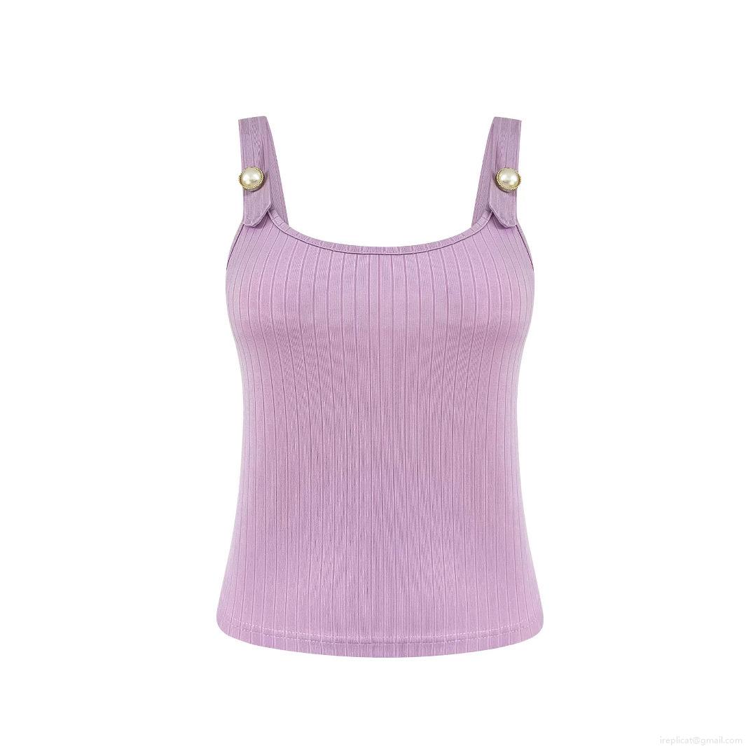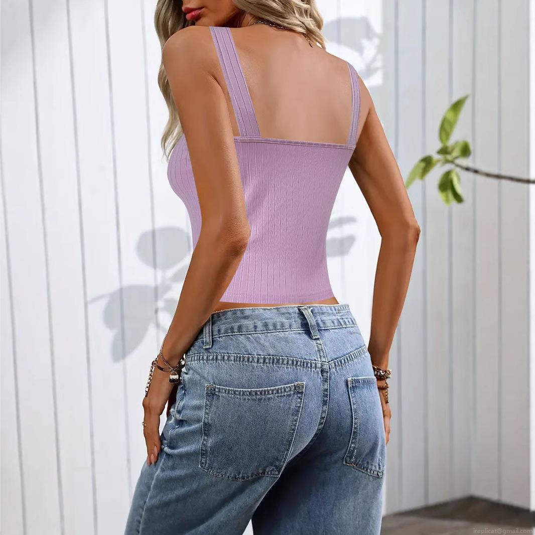 • Women's Sexy Slim Fit Ribbed Knit Tank Top Pearl Button Decoration Square Neck Sleeveless Camisole Summer Streetwear Base Layer