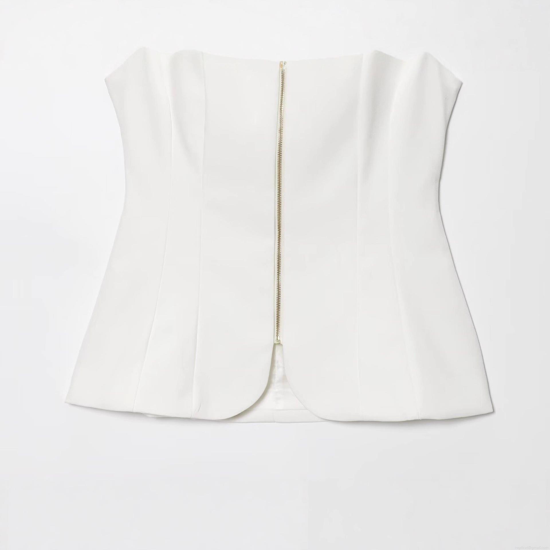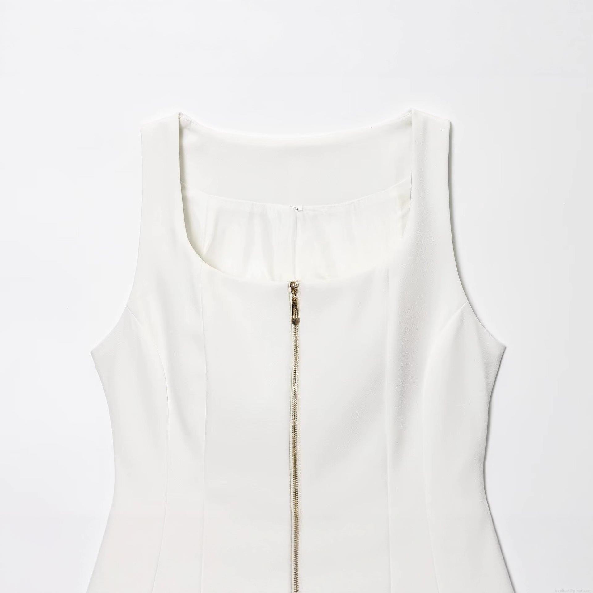 • Women's Sexy Slim Fit Sleeveless Vest Top With Front Zipper U-Neck Polyester Street Style Bodycon Tank Top For Party Clubwear Daily Casual White
