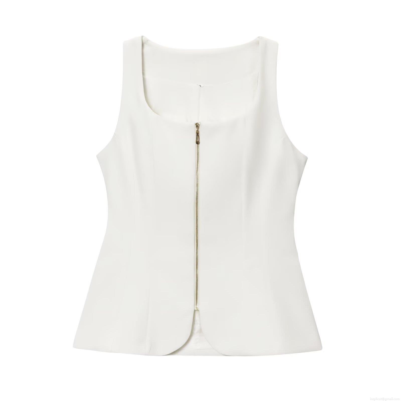 Women's Sexy Slim Fit Sleeveless Vest Top With Front Zipper U-Neck Polyester Street Style Bodycon Tank Top For Party Clubwear Daily Casual White