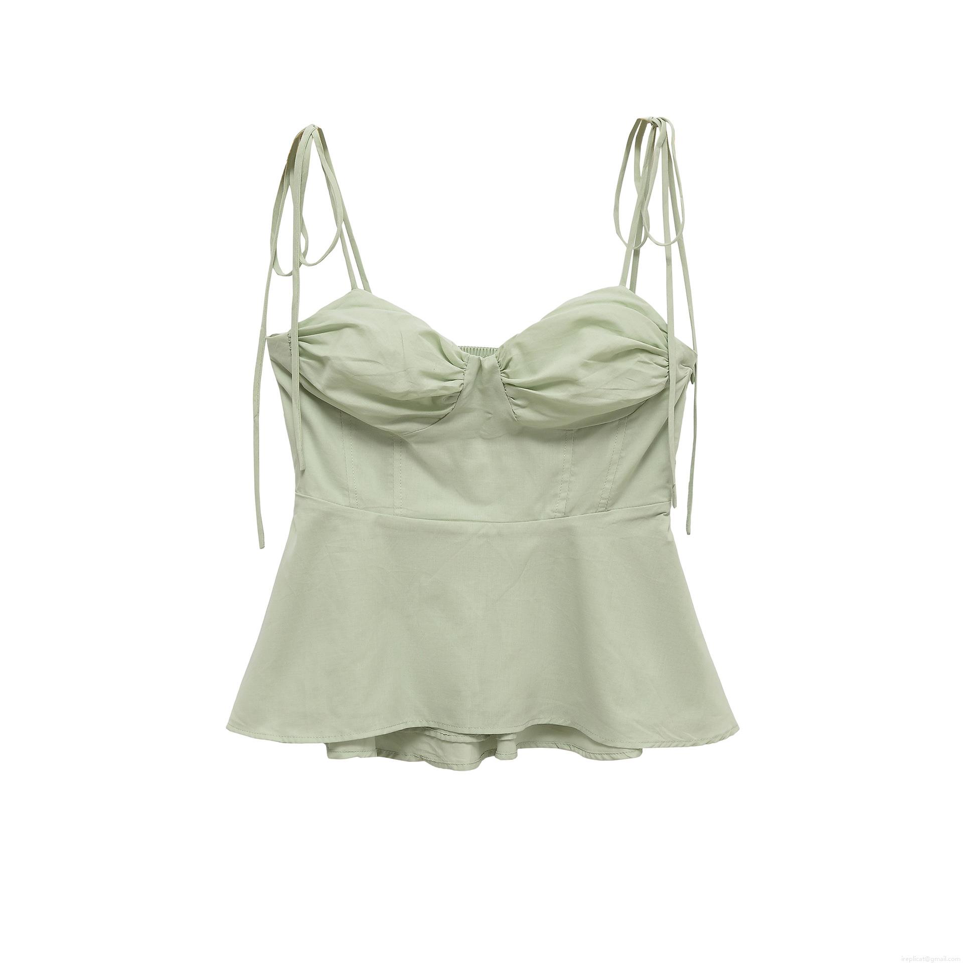 • Women's Sexy Solid Color Peplum Camisole Top With Tie-up Straps And Pleated Bust Sleeveless Polyester Summer Tops For Women Streetwear Party Dating