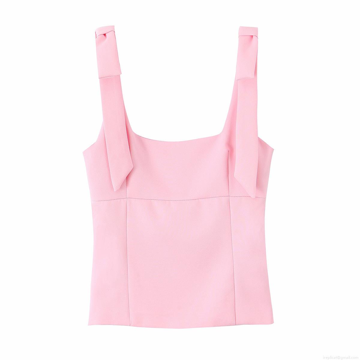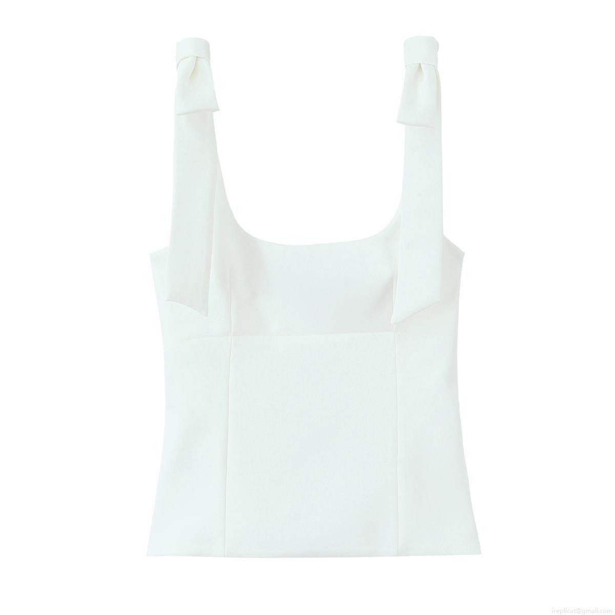 • Women's Sexy Square Neck Bow Tie Shoulder Strap Camisole Top Summer Slim Fit Plain Sleeveless Vest Shirt Streetwear Fashion Crop Tank Top