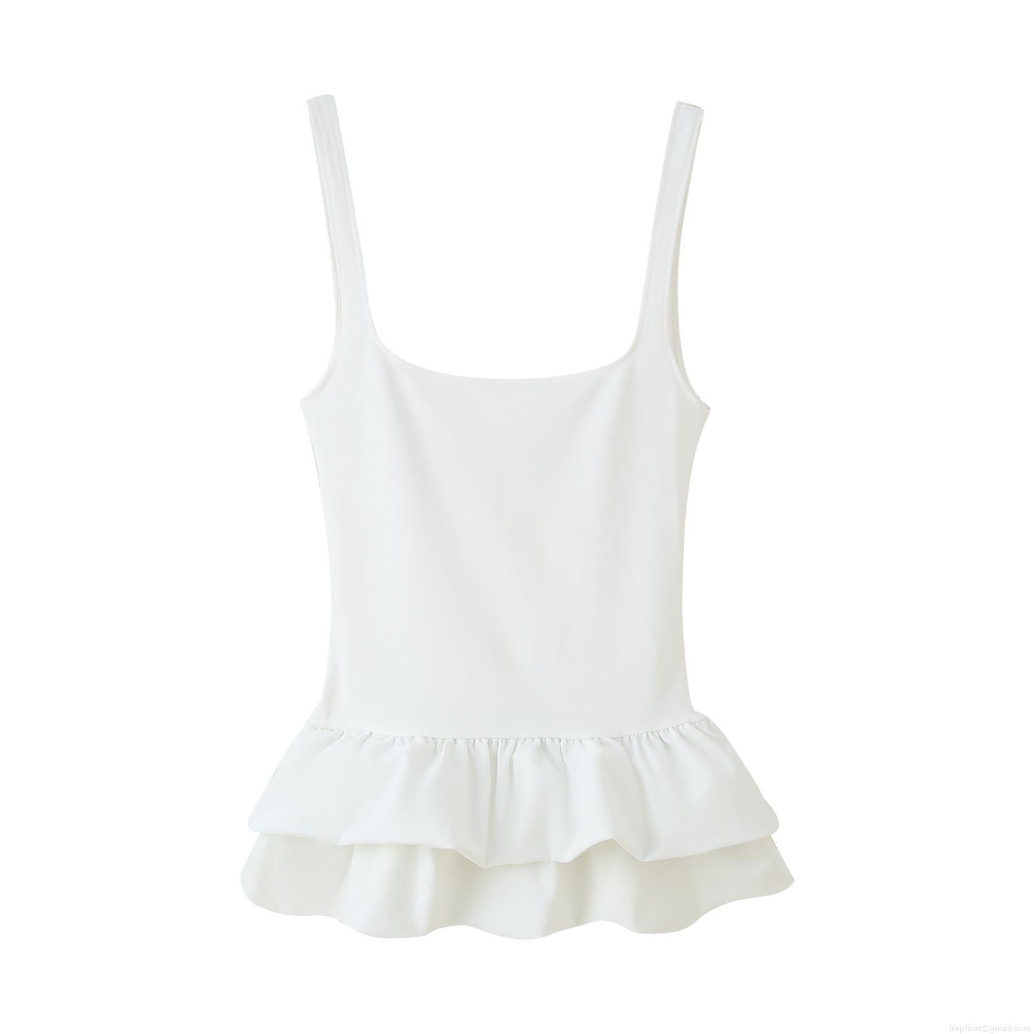 • Women's Sexy Square Neck Peplum Tank Top Double Layer Ruffle Hem Slim Fit Sleeveless Cami Top Summer Solid Color Knit Camisole Party Clubwear