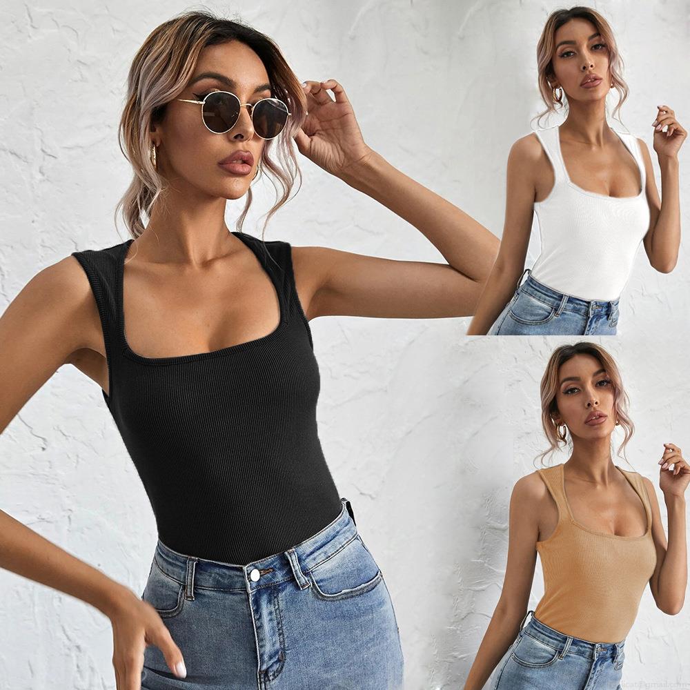 • Women's Sexy Square Neck Ribbed Knit Tank Top Sleeveless Slim Fit Viscose Solid Basic Camisole For Women Summer Casual Tops