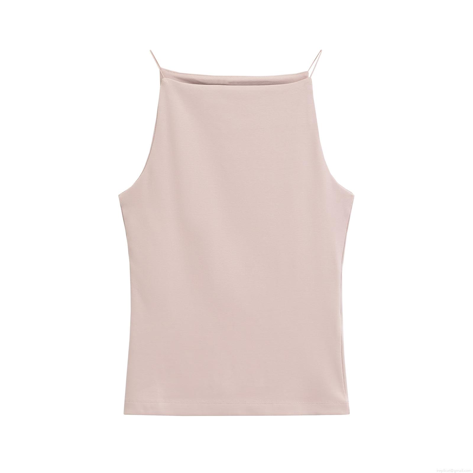 Solid Color, Square Collar, Splicing Process, Thin Shoulder Straps