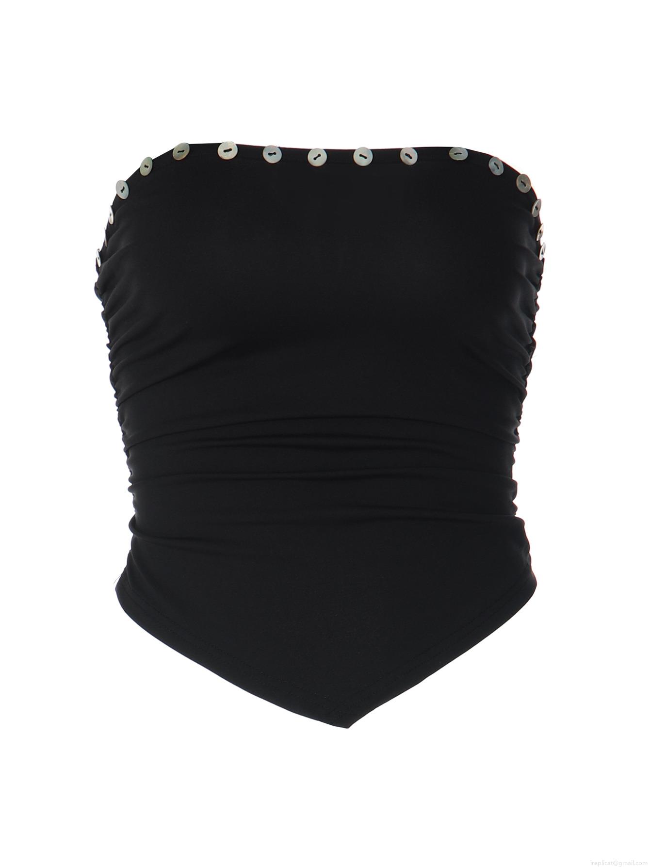 • Women's Sexy Strapless Ruched Tube Top With Shell Buttons Decoration Irregular Hem 95% Polyester 5% Spandex Slim Fit Streetwear Y2K Crop Top