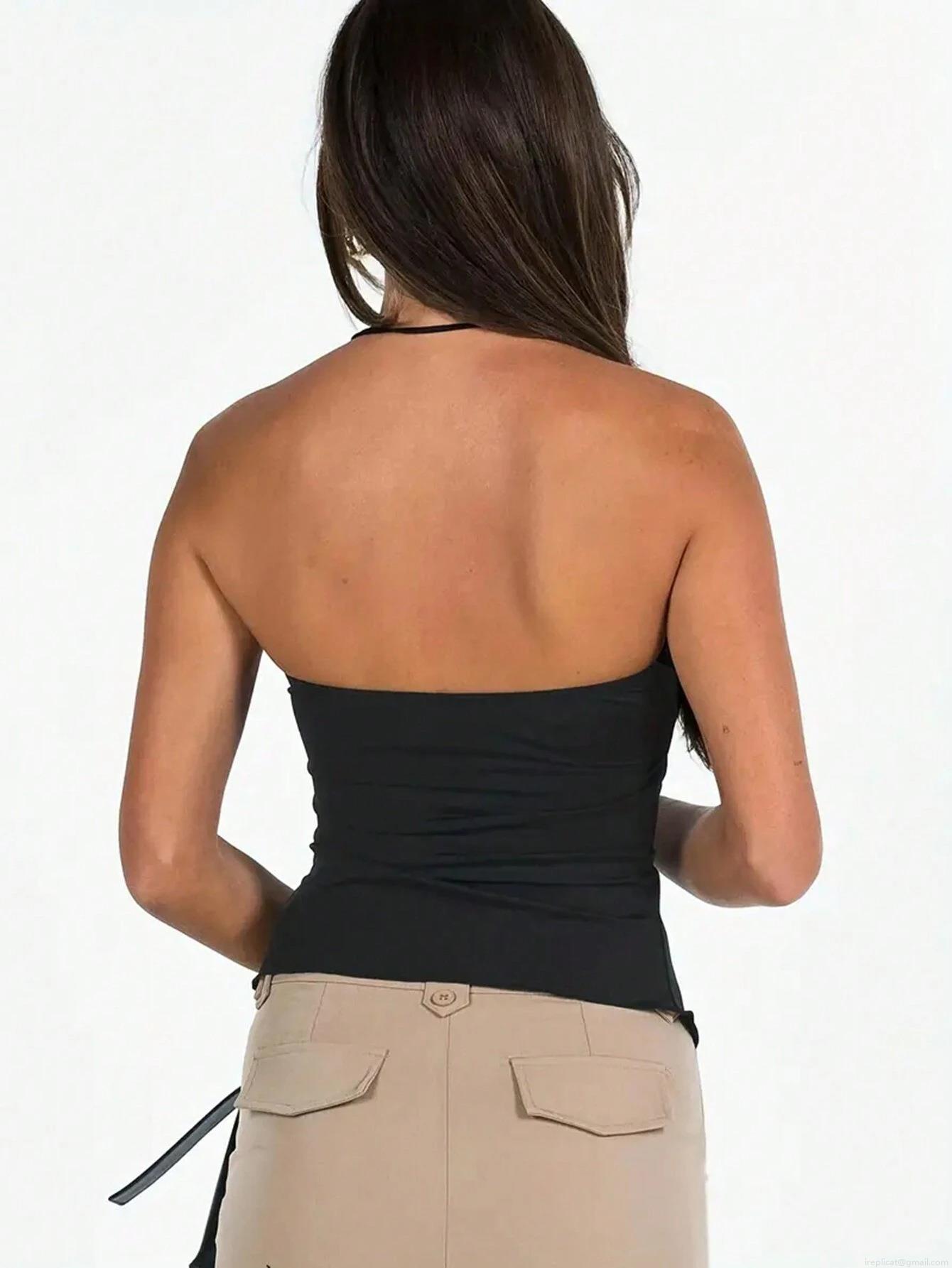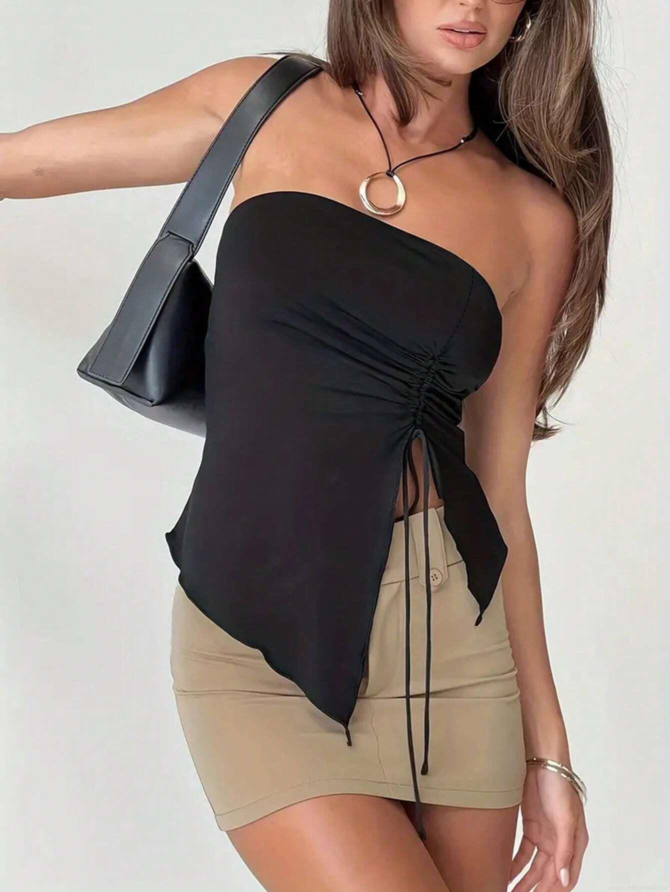 • Women's Sexy Strapless Tube Top Drawstring Pleated Irregular Slit Slim Fit Polyester And Elastane Summer Top For Party Clubwear