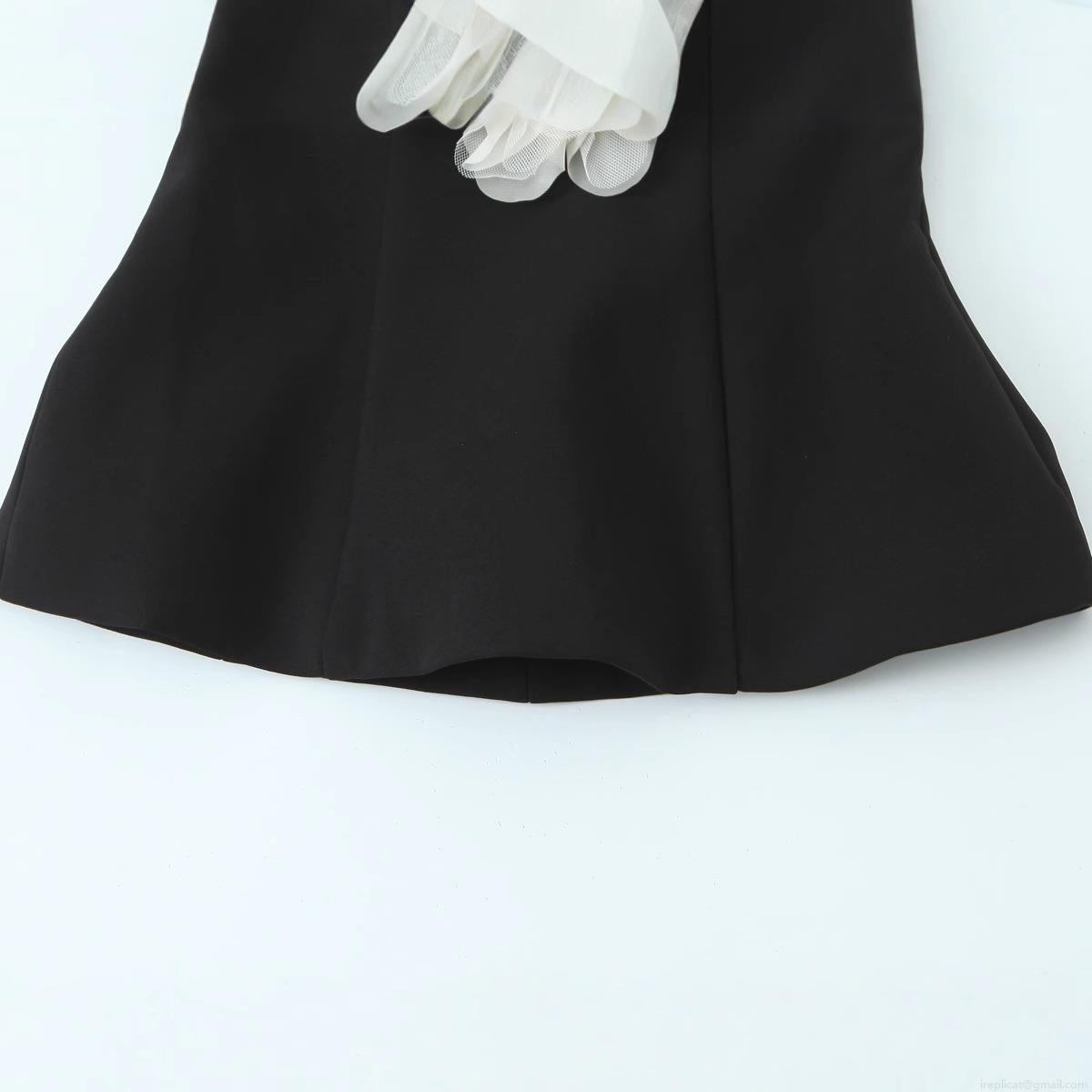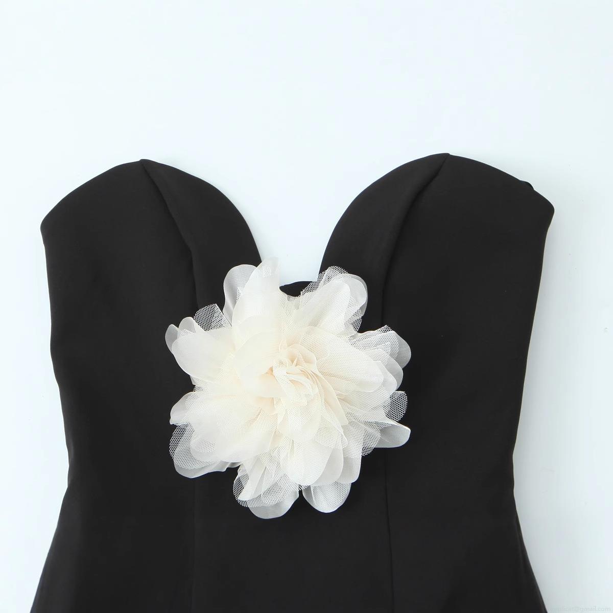Color Blocking, 3d Decoration, Three-dimensional Flowers, Off-shoulder
