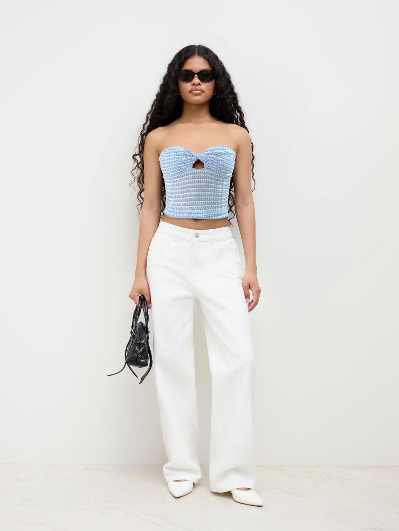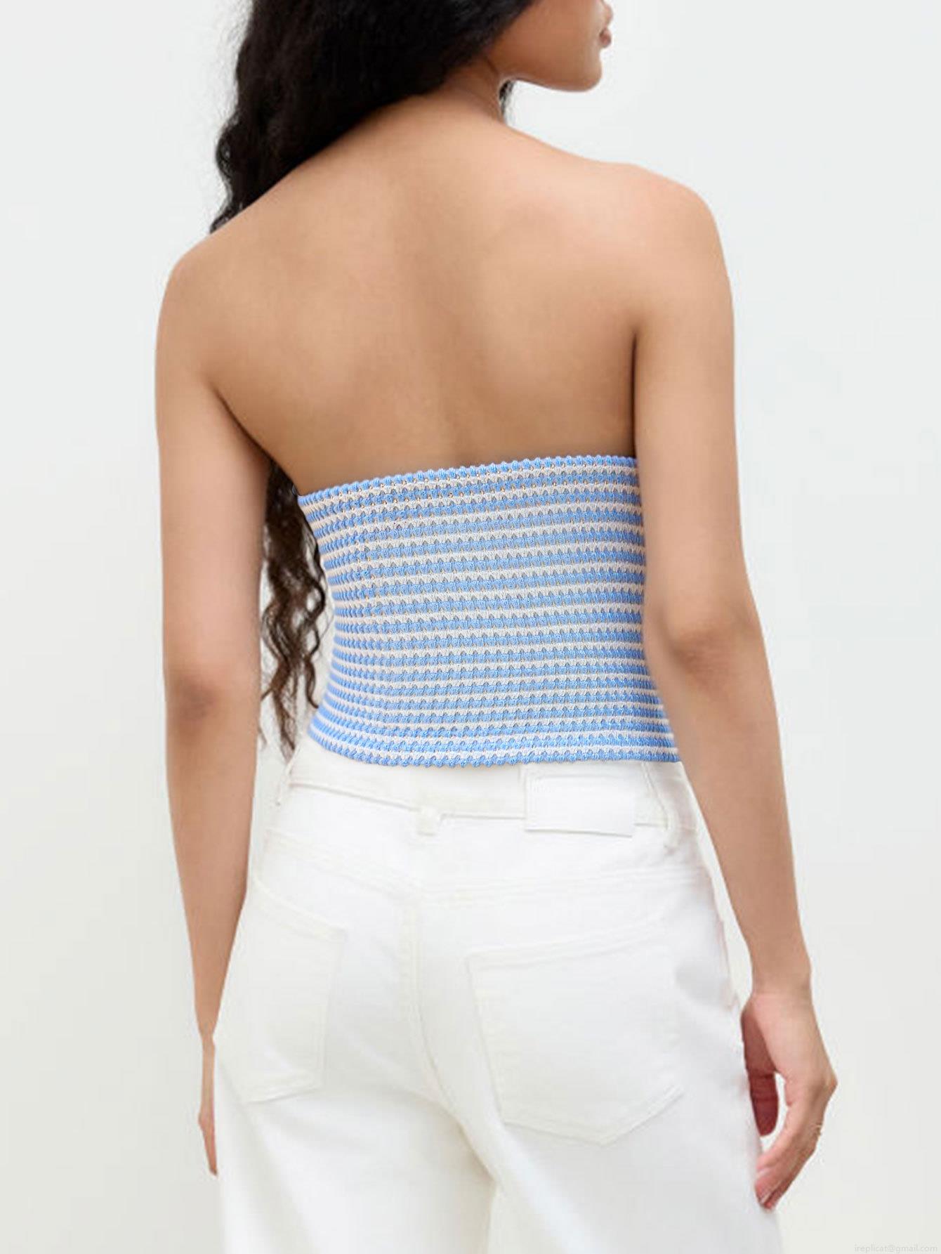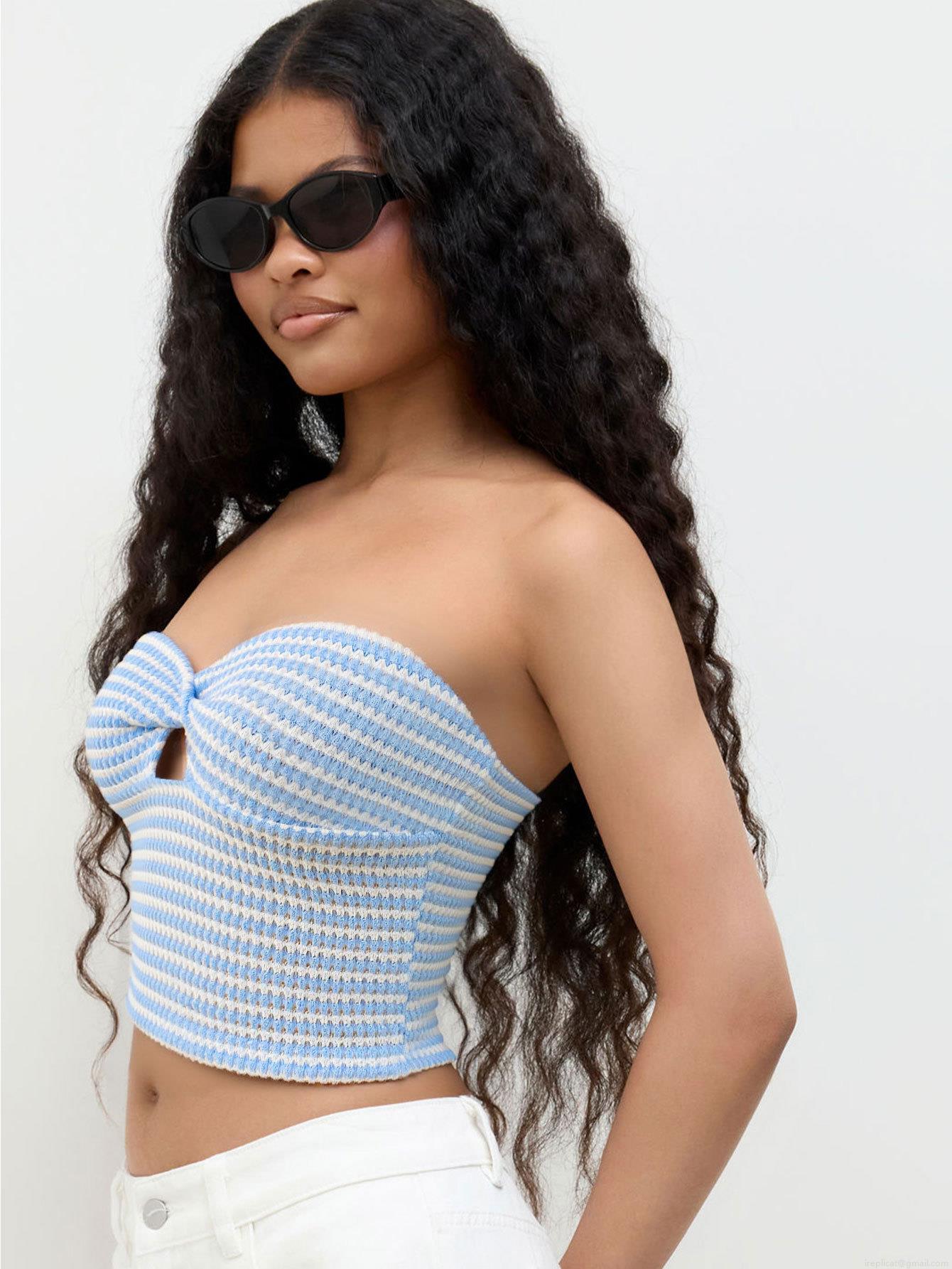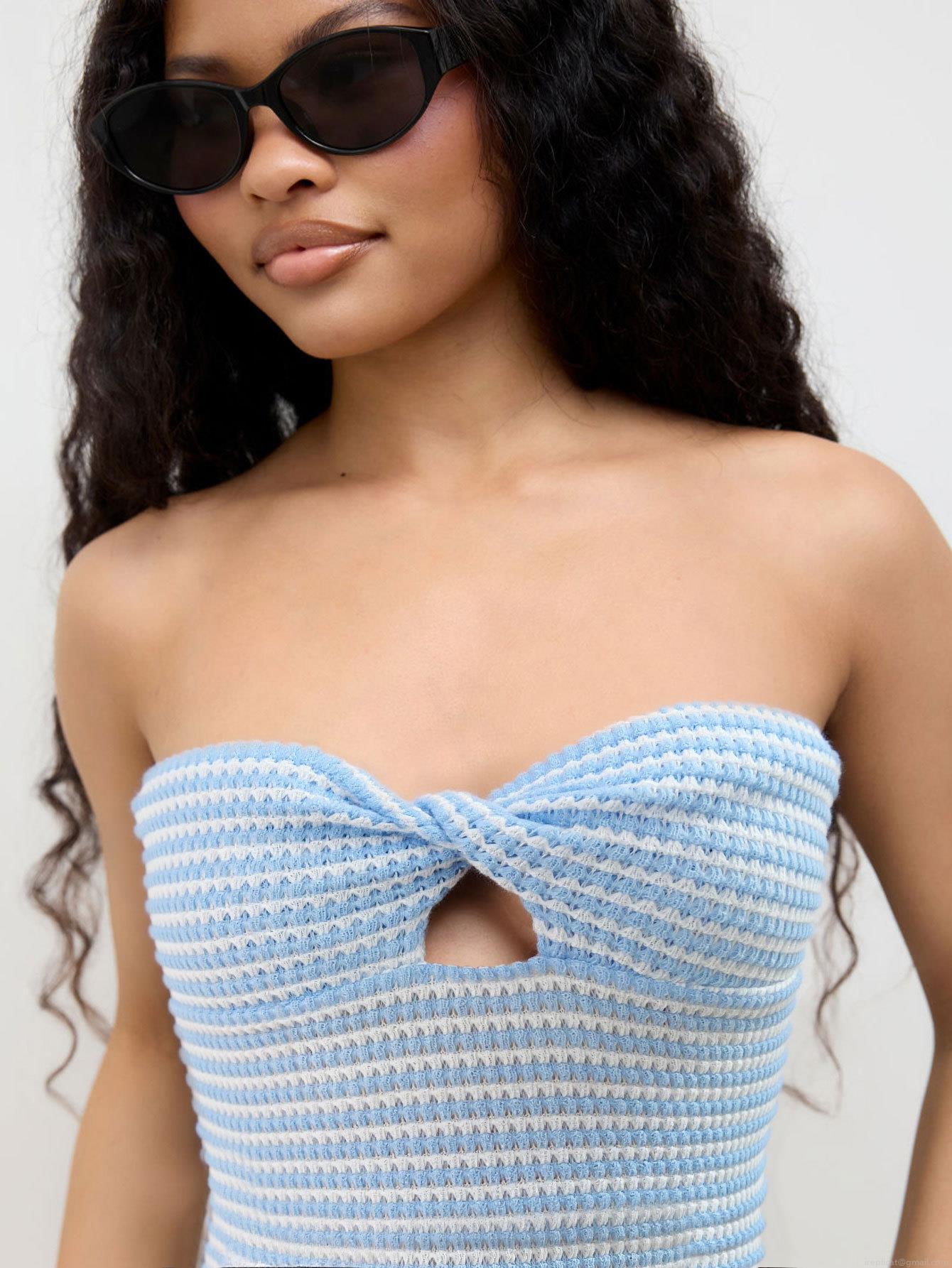 • Women's Sexy Striped Knit Tube Top Strapless Twist Knot Cutout Front Crop Top Summer Sleeveless Ribbed Bandeau Vest For Vacation Party Clubwear