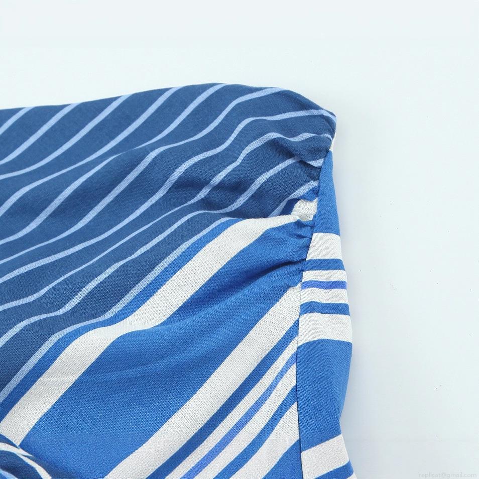 • Women's Sexy Striped Tube Top Backless Polyester Lace Up Bandeau Crop Top For Summer Beach Vacation Navy Blue White Strapless Top