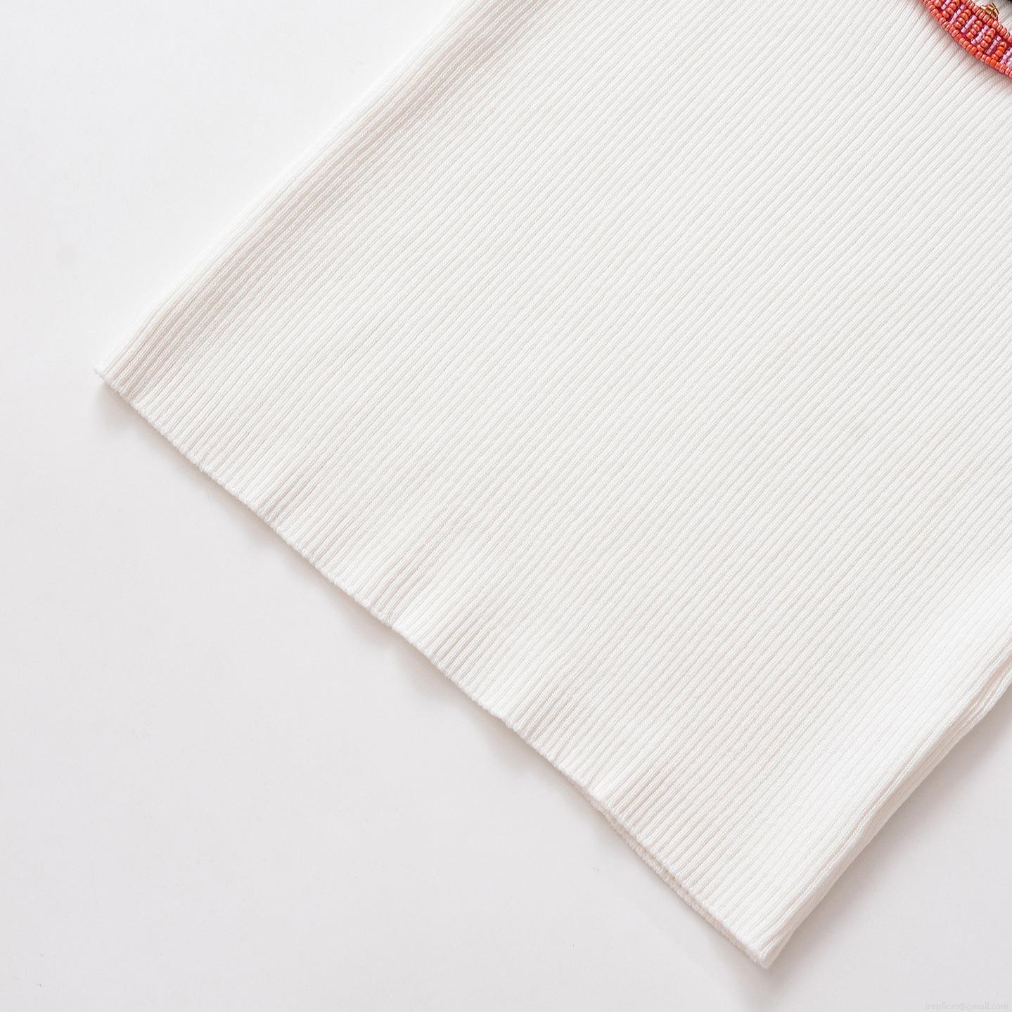 Women's Sexy Sweet Spicy Style White Ribbed Knit Tank Top Hand Beaded Fish Embroidery Mercerized Cotton Slim Fit Sleeveless U Neck Summer Top