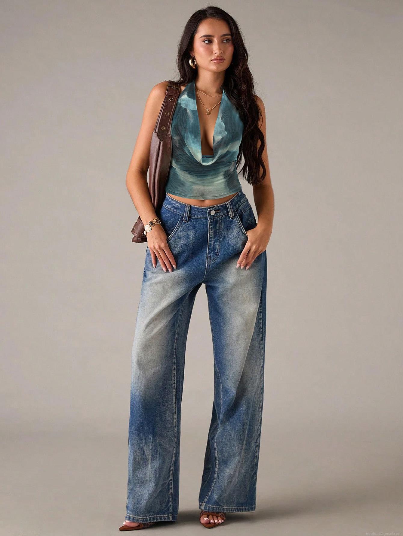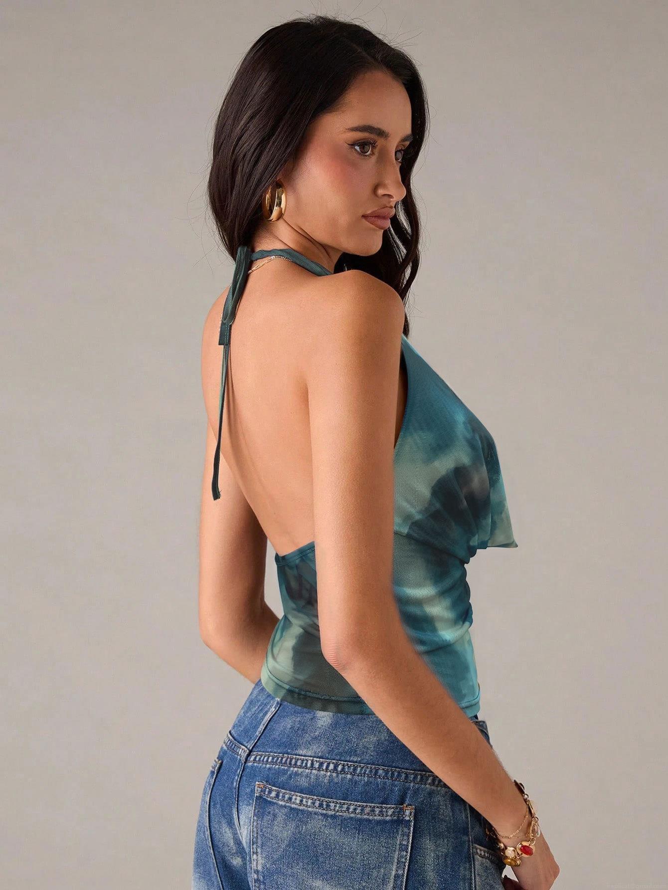 Tie Dye, Backless, Neckband Design, Slim Fit, Abstract Marble Pattern