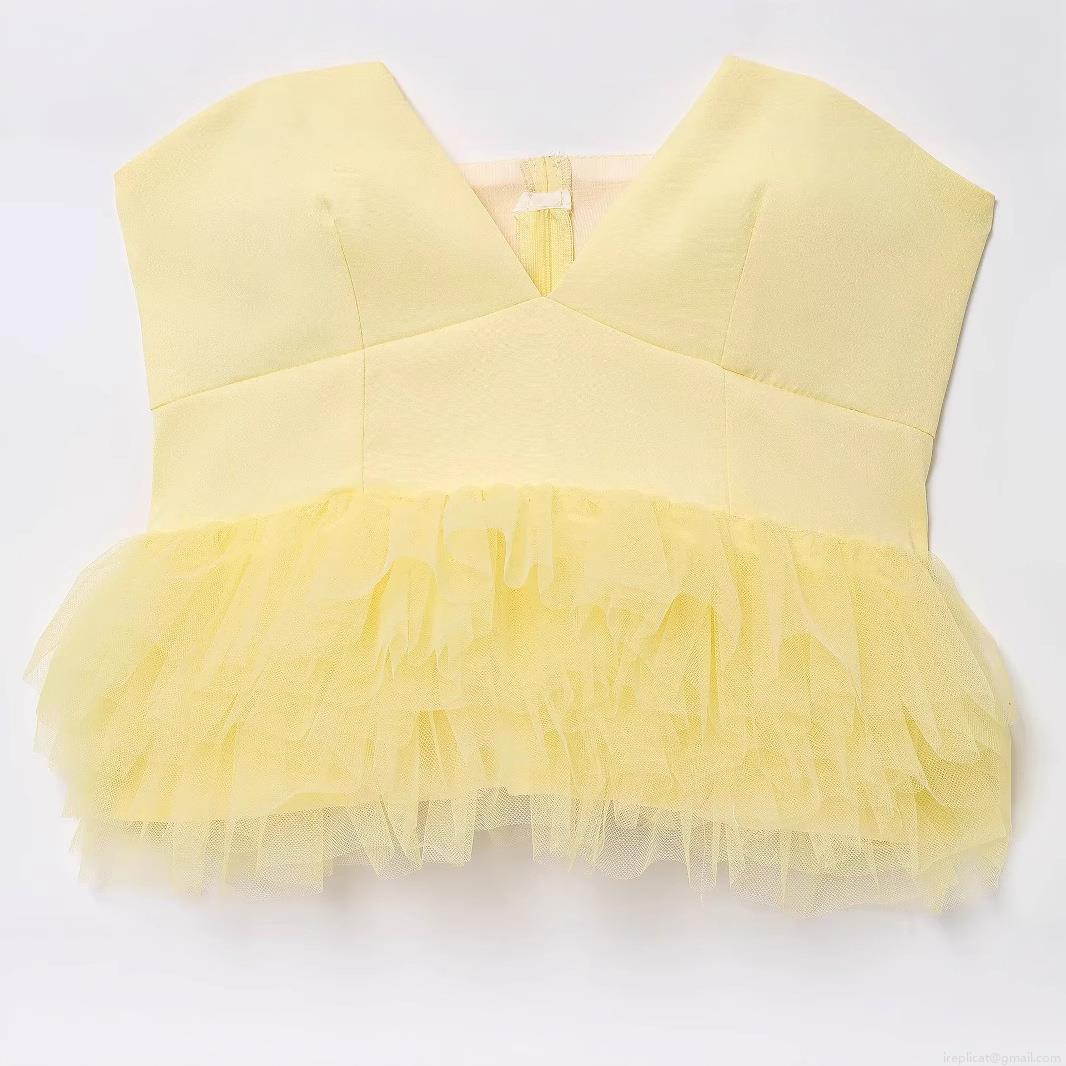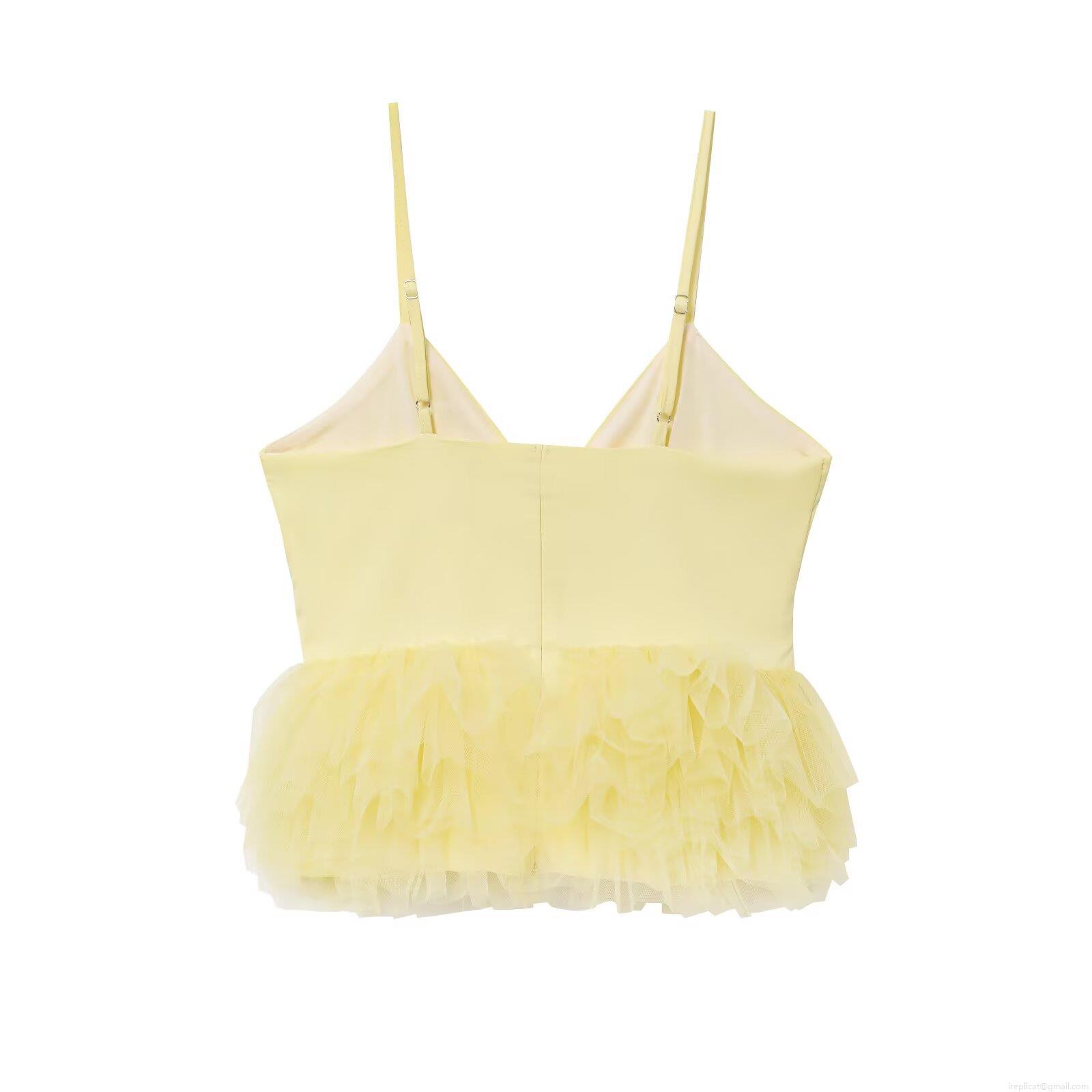 • Women's Sexy V Neck Mesh Patchwork Peplum Camisole Top Elegant Solid Yellow Sleeveless Adjustable Spaghetti Strap Tank Top For Party Clubwear