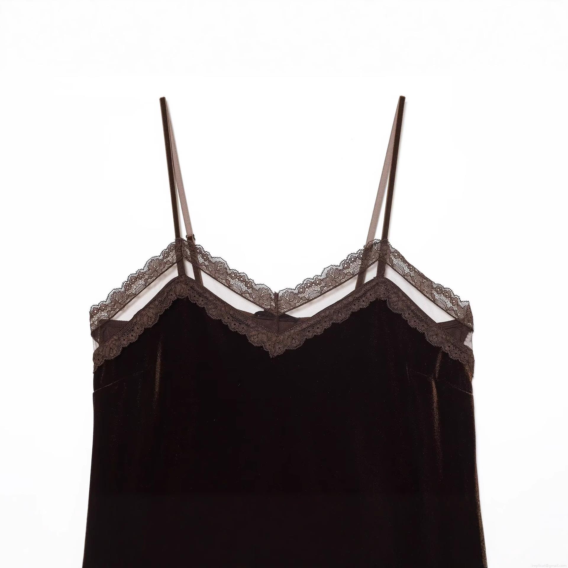 • Women's Sexy Velvet And Lace Patchwork Camisole V-Neck Spaghetti Strap Tank Top Slim Fit Sleeveless Crop Top For Party Streetwear