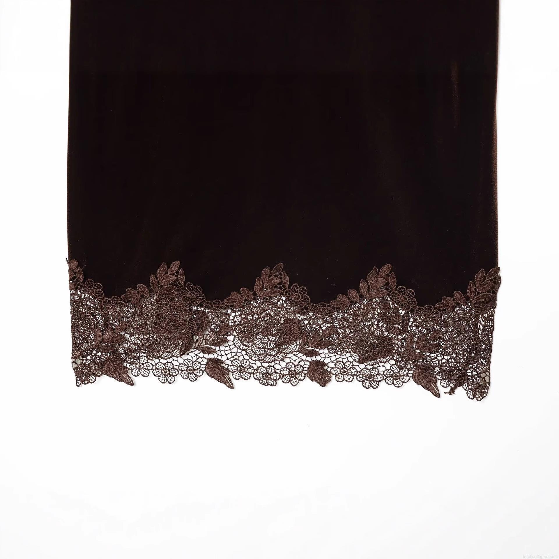 Solid Color, V-neck, Lace Patchwork, Velvet Texture
