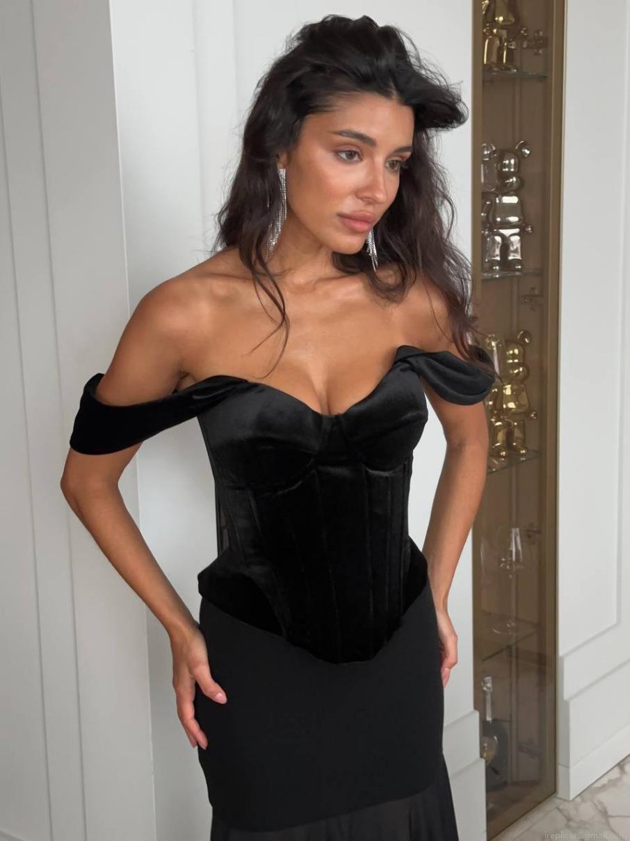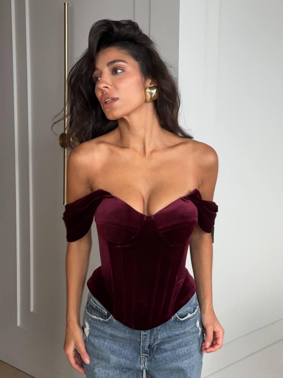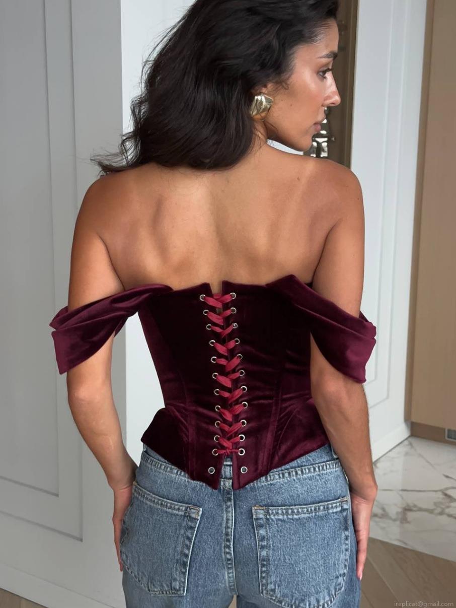 • Women's Sexy Velvet Corset Top Off Shoulder Slim Fit Bustier With Back Lace Up Vintage French Style Fishbone Camisole For Party Clubwear