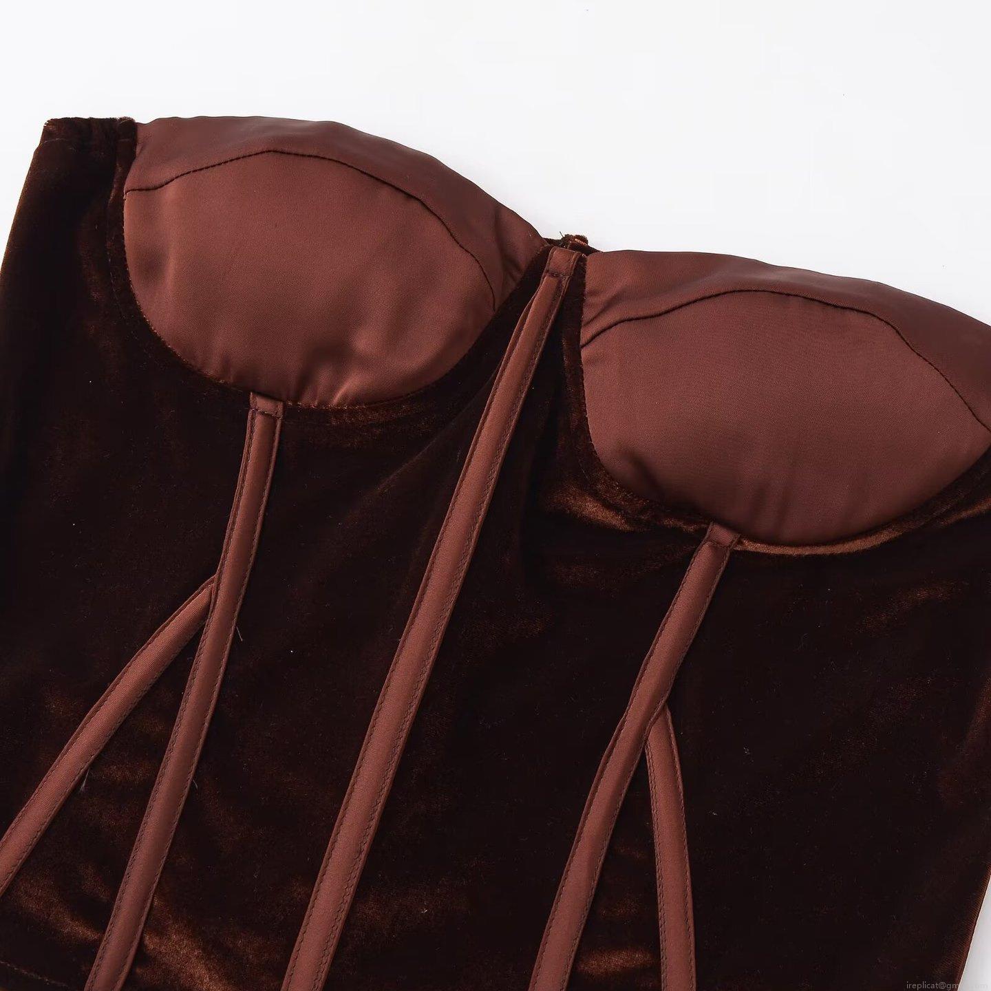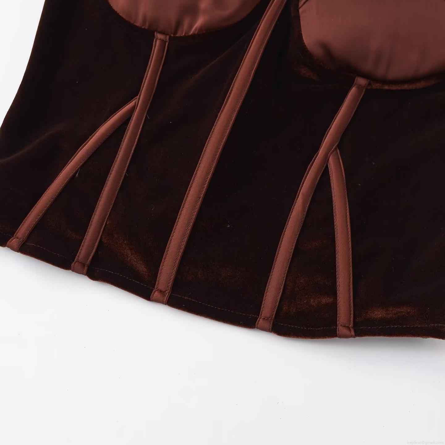• Women's Sexy Velvet Corset Top With Fishbone Support Strapless Slim Fit Crop Top Elegant Dark Red Satin Patchwork Bustier With Hook-and-Eye Closure For Party