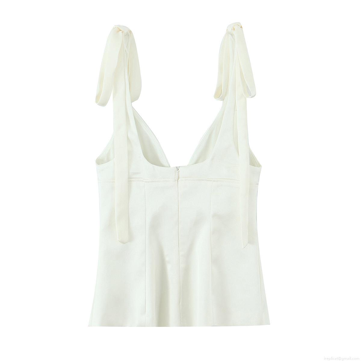 • Women's Sexy V-Neck Satin Camisole Top Tie-Shoulder Bow Knot Slim Fit Sleeveless Blouse For Summer Party Date Daily Wearing