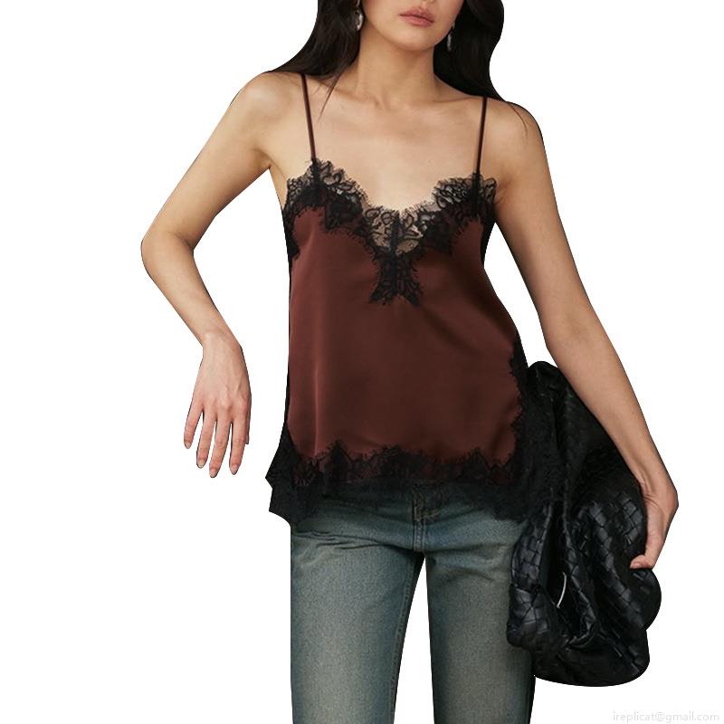 • Women's Sexy V-Neck Satin Lace Patchwork Camisole Backless Slim Fit Sleeveless Tank Top For Summer Dating Party Fashion Streetwear