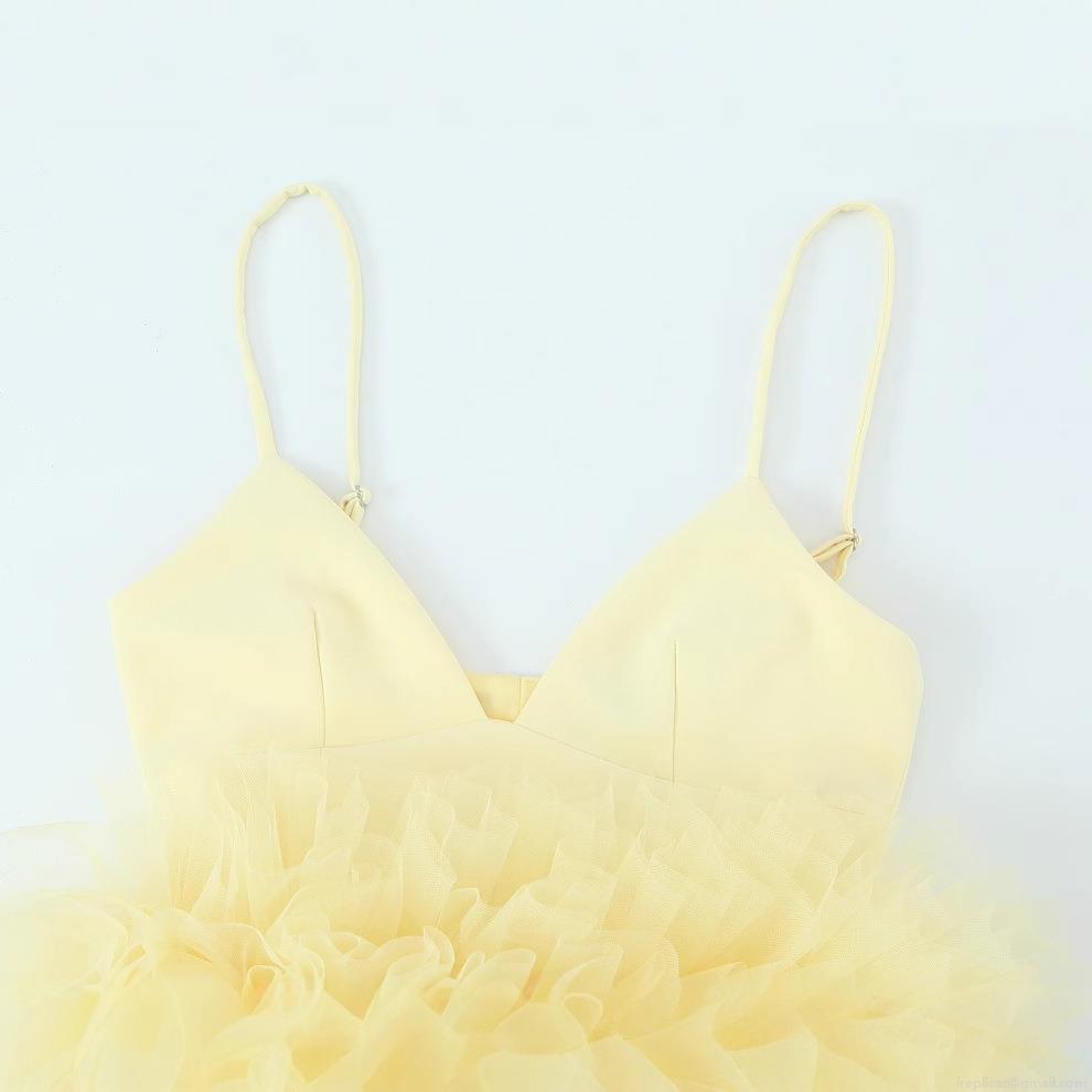 Women's Sexy V-Neck Sleeveless Mesh Tulle Camisole Ruffled Puffy Hem Spandex Acrylic Top For Party Summer Clubwear Streetwear