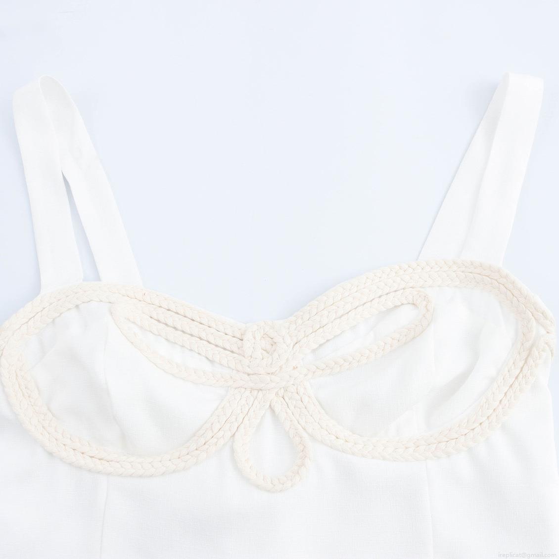 • Women's Sexy White Crop Top Bustier With Beige Rope Braided Knot Strappy Camisole Side Zipper Slim Fit Backless Tank Top For Summer Party Clubwear